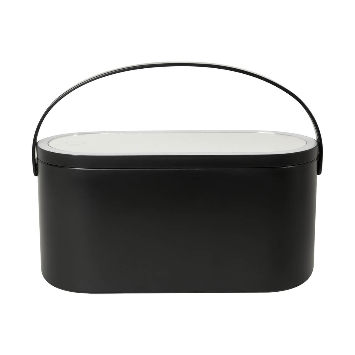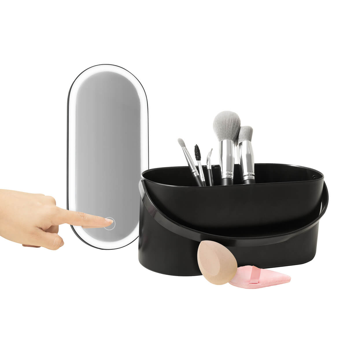 NECESER DARISSA - Organizador de cosméticos con espejo integrado. Su tapa incluye un espejo con luz LED ajustable a 3 intensidades, se activa presionando por 5 segundos el botón touch. El diseño versátil permite ajustar el espejo en diferentes posiciones, incluso desmontarlo y utilizarlo de manera individual, brindando comodidad y precisión al maquillarte. Compacto y elegante, es el accesorio ideal para mantener tus accesorios organizados. Batería recargable e incluye cable con conexión USB-C y caja individual.