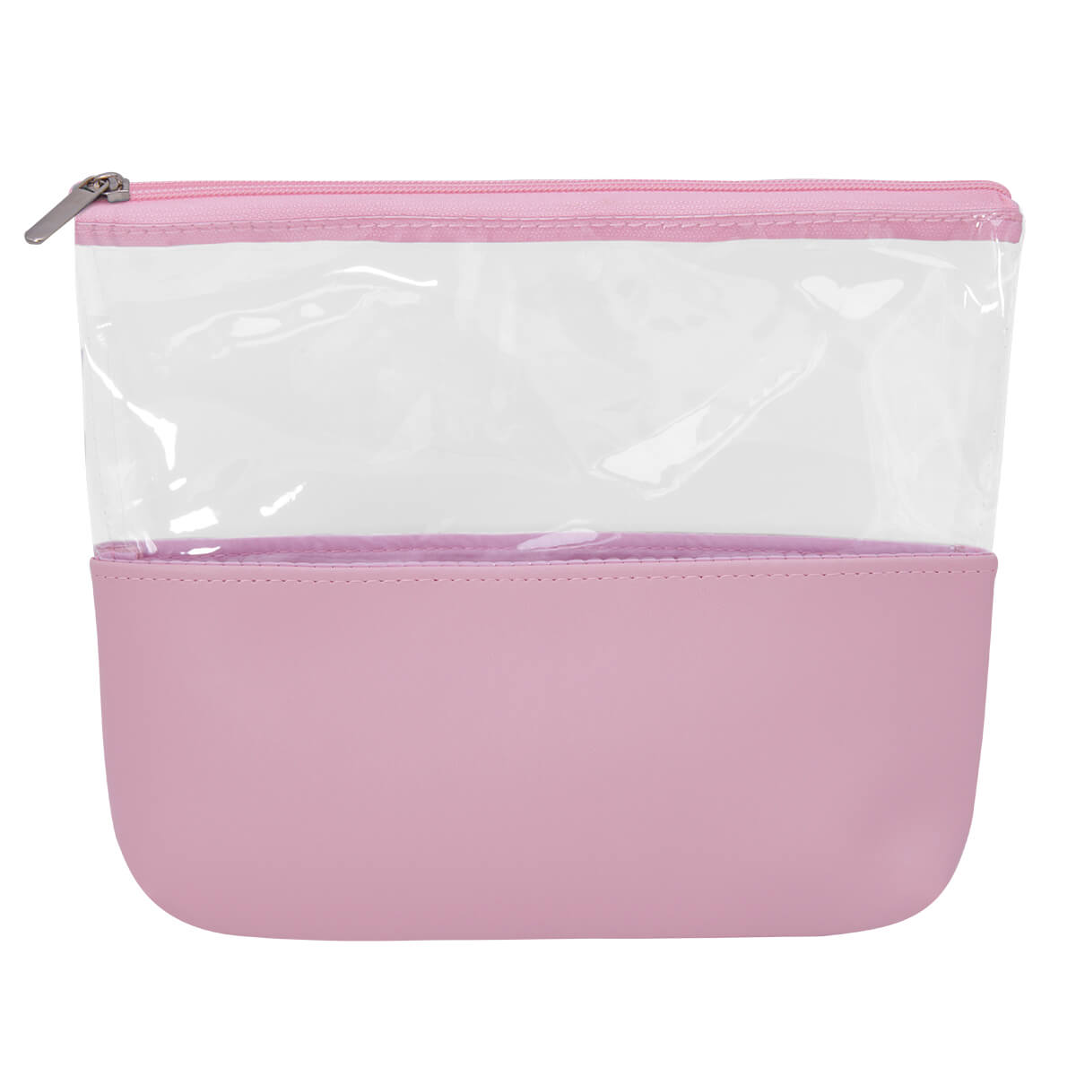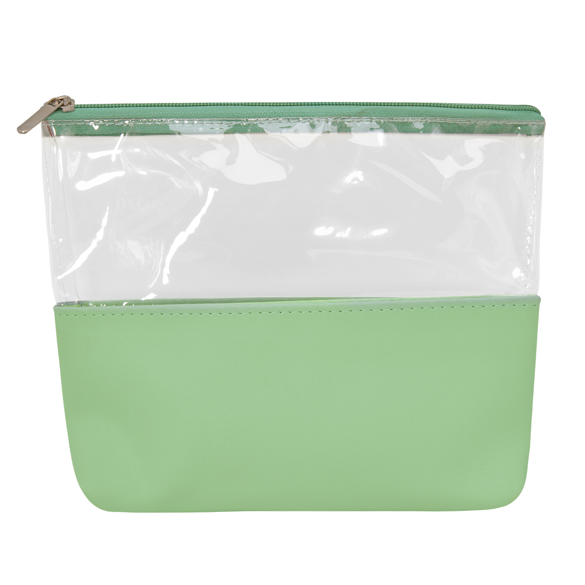 COSMETIQUERA ESMERALDA - Cosmetiquera con cierre. Diseño combinado de PVC transparente y curpiel de color en base.