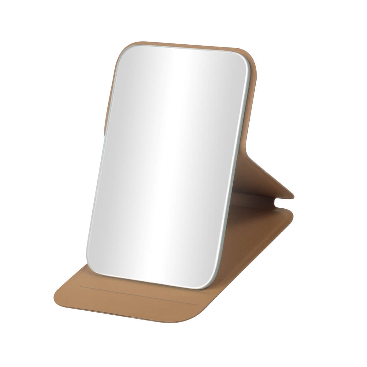 ESPEJO PLEGABLE AINÉ - Espejo plegable con cubierta de curpiel. Cuenta con 3 posiciones de inclinación para ajustarlo a tu comodidad. Llevalo en tu bolsa o acomodalo en el tocador.
