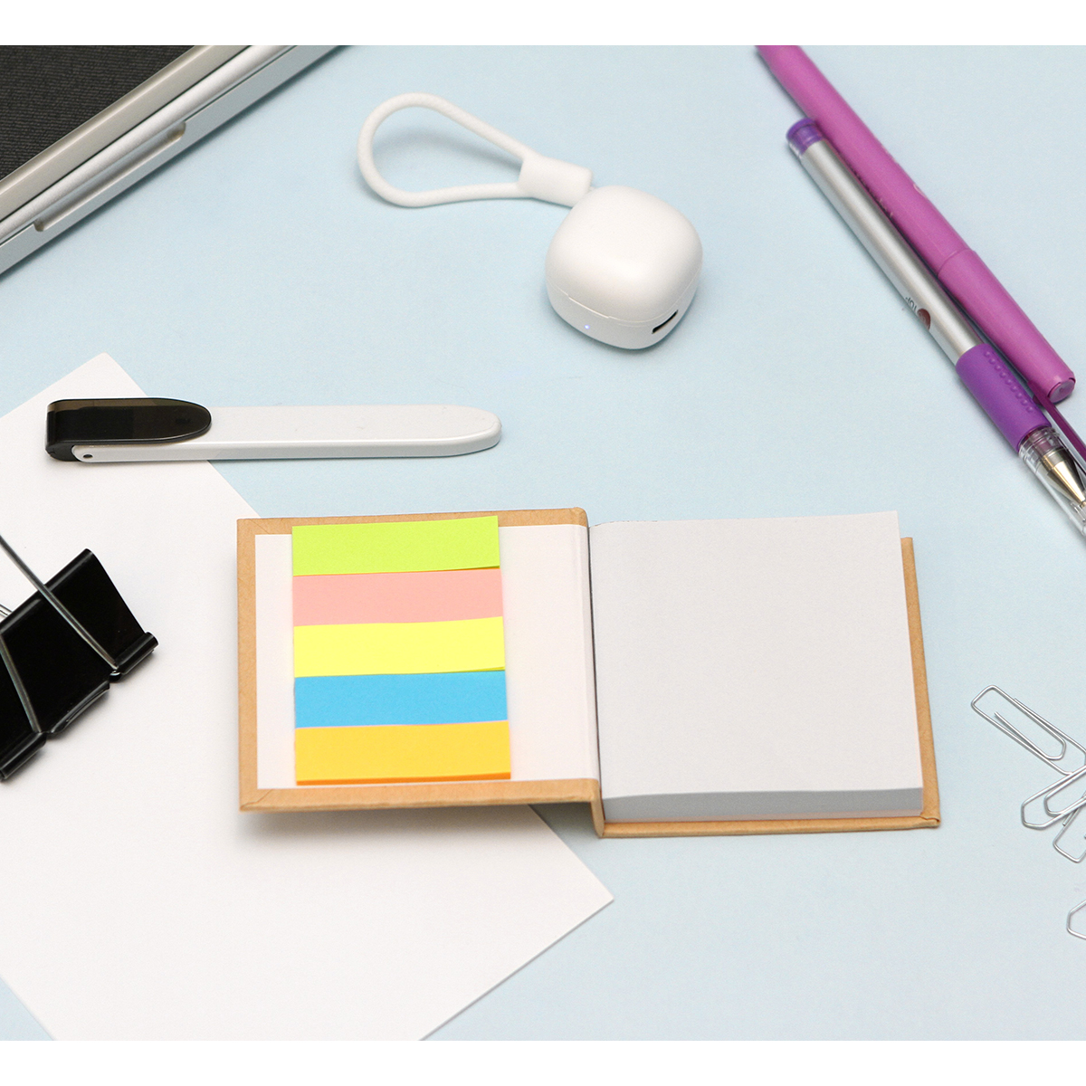 Libreta ecológica Hanoí. - Libreta ecológica de pasta rígida con notas de color blanco y banderitas de colores adhesivas. Es una opción ideal para aquellos que buscan una libreta funcional y ecológica.