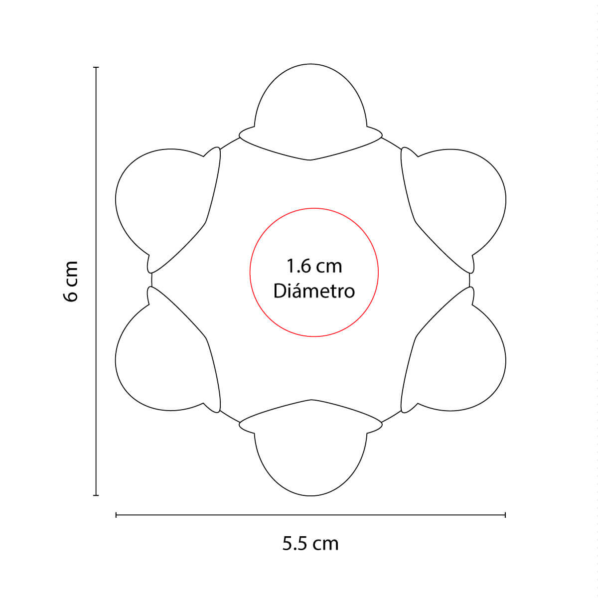 MATERIAL: Plástico MEDIDAS: 5.5 x 6 cm IMPRESION: Goteado en Resina / Tampografía MED. EMPAQUE: 40 x 33 x 30 cm PESO EMPAQUE: 50 Kg PIEZAS EMPAQUE: 400