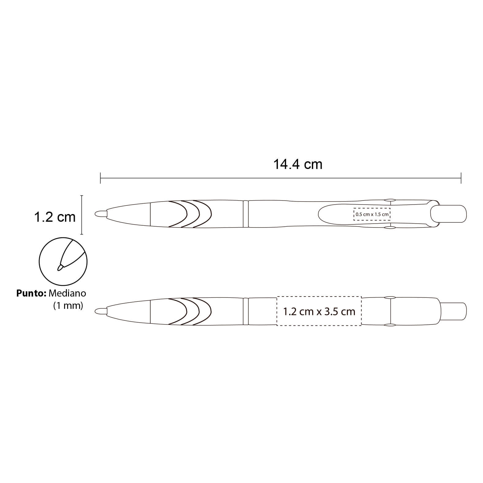 MEDIDAS: 14.40x1.20 IMPRESION: Serigrafía MED. EMPAQUE: 31.00x17.00x16.00 PESO EMPAQUE: 4.7 PIEZAS EMPAQUE: 500