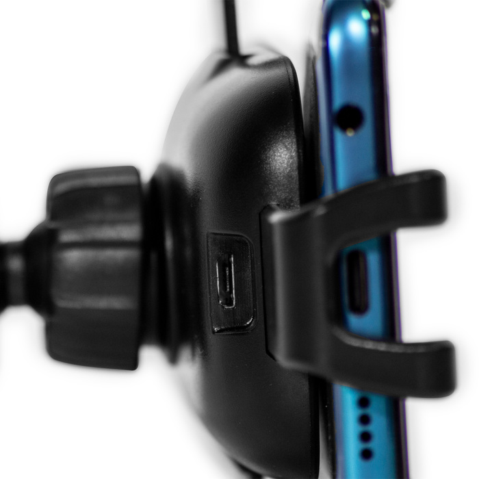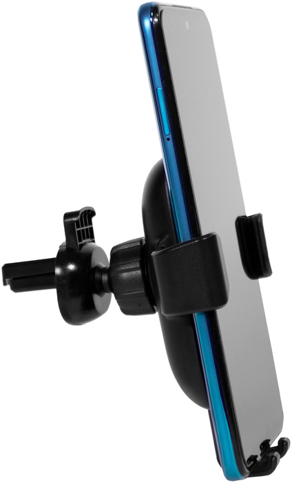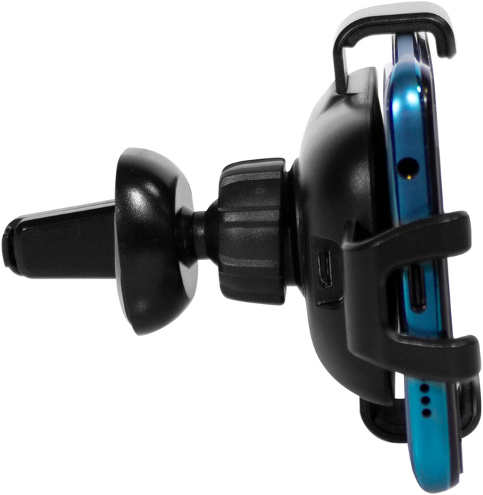 HOLDER PARA CELULAR ¨CHIAPAS¨ Holder para celular con botón en la parte trasera. Mediante una leve presión se engancha en la ventilación del aire acondicionado del auto. El celular se apoya sobre 3 brazos que se ajustan para obtener una buena sujeción. En el centro cuenta con un circulo y con el simple contacto del celular comienza a cargar de manera inalámbrica la bateria. En la parte inferior tiene una entrada mini USB que permite darle carga al holder. Voltaje de entrada: 15W. Voltaje de salida: 10 W. Viene con cable cargador. Presentación en caja de regalo.