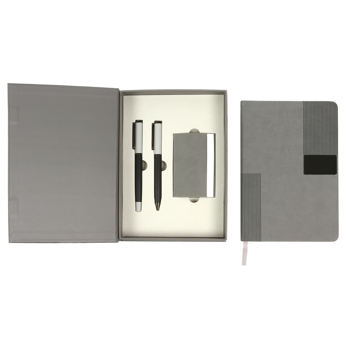 Set Bruz. - Set ejecutivo, incluye dos bolígrafos, tarjetero y libreta de 80 g y 100 hojas. Set empaquetado en caja de regalo con diseño ejecutivo y espacio adecuado para guardar todos los artículos.