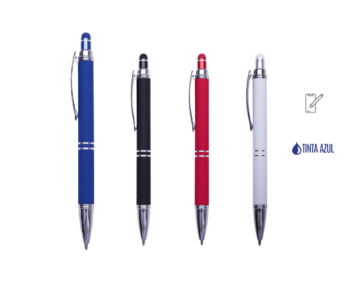 BOLÍGRAFO TOUCH "LOGIX" Cuerpo color negro engomado. Puntera touch y apertura g...