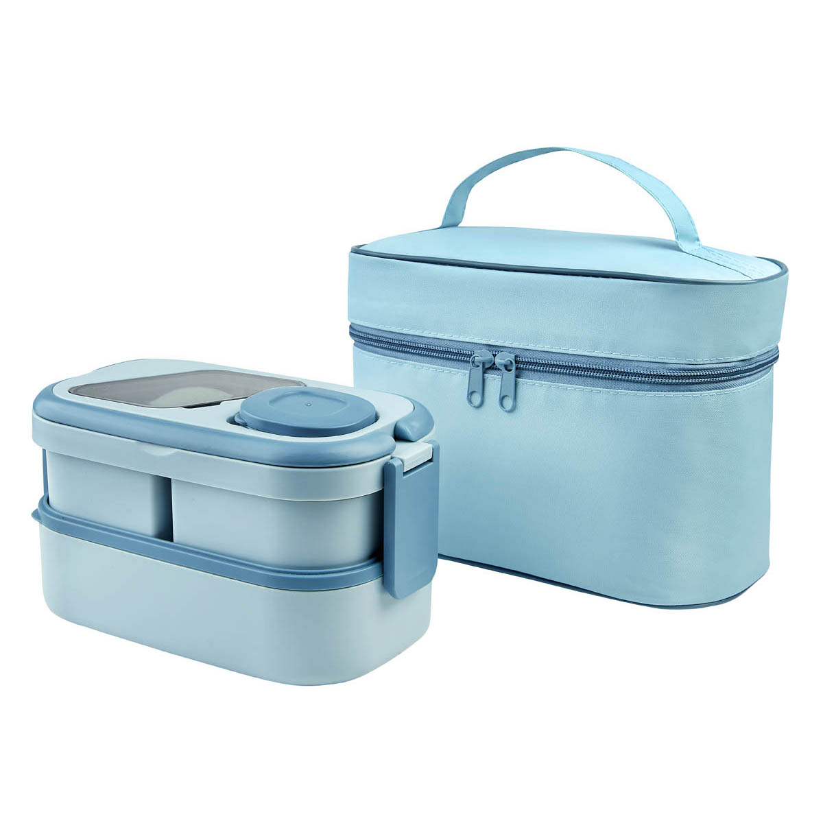 SET PORTAVIANDAS AMANDA - Set de lonchera y portaviandas. Incluye contenedor de alimentos con triple compartimento, capacidad total de 1.6 litros. Su tapa cuenta con asas plegables que facilitan su transporte, además, una práctica cuchara tenedor y un mini recipiente para aderezos. Su lonchera es el complemento perfecto, fabricada en poliéster con interior de aluminio. El compartimento principal, cuenta con un cierre seguro y un bolsillo interior de malla, para guardar objetos pequeños. Apto para microondas o lavavajillas. Capacidad para 6 latas.