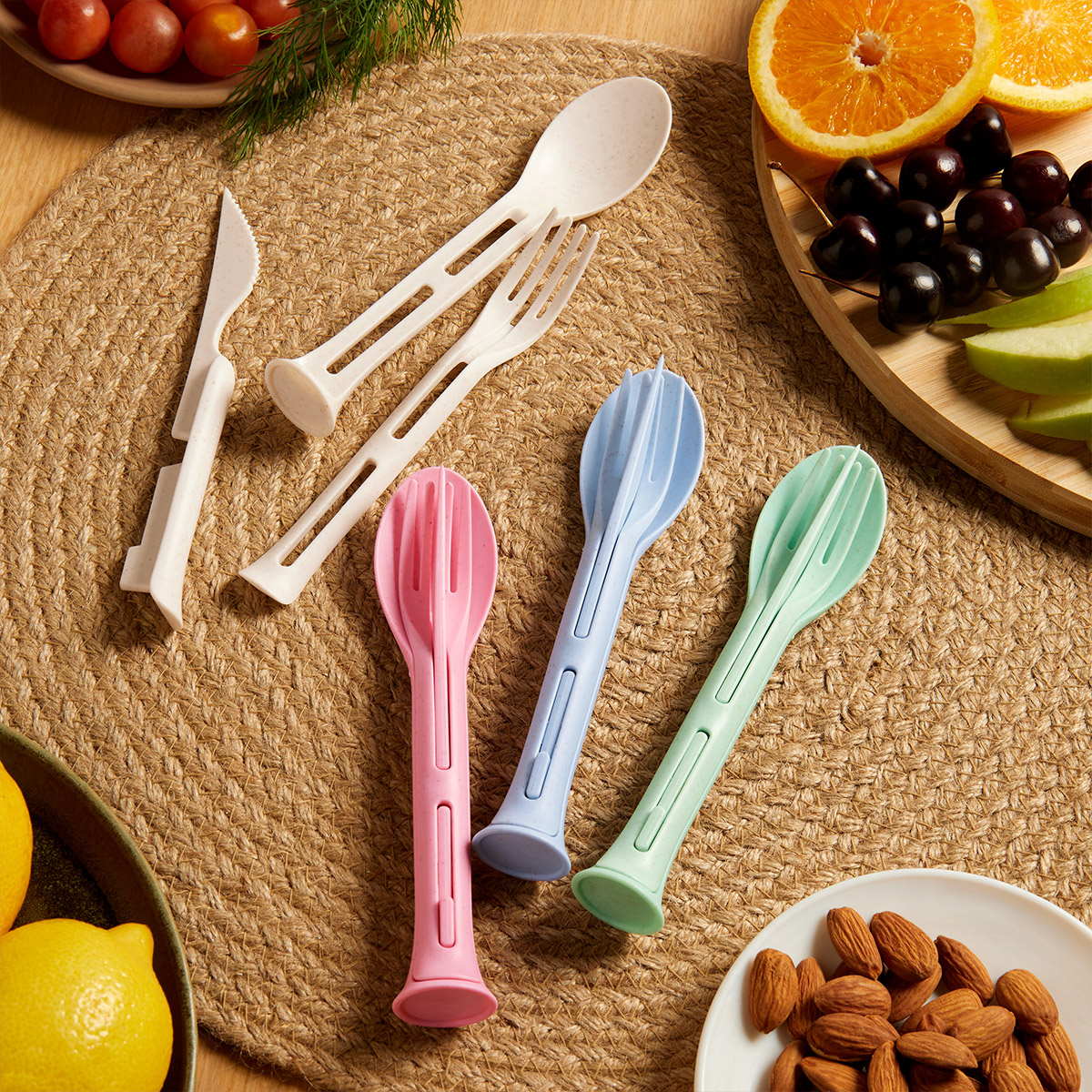 SET DE CUBIERTOS FLORENCIA - Set de cubiertos 3 en 1 desmontables. Cuenta con cuchillo, tenedor y cuchara. Tiene un peso ligero y es fácil de transportar. Incluye caja individual.