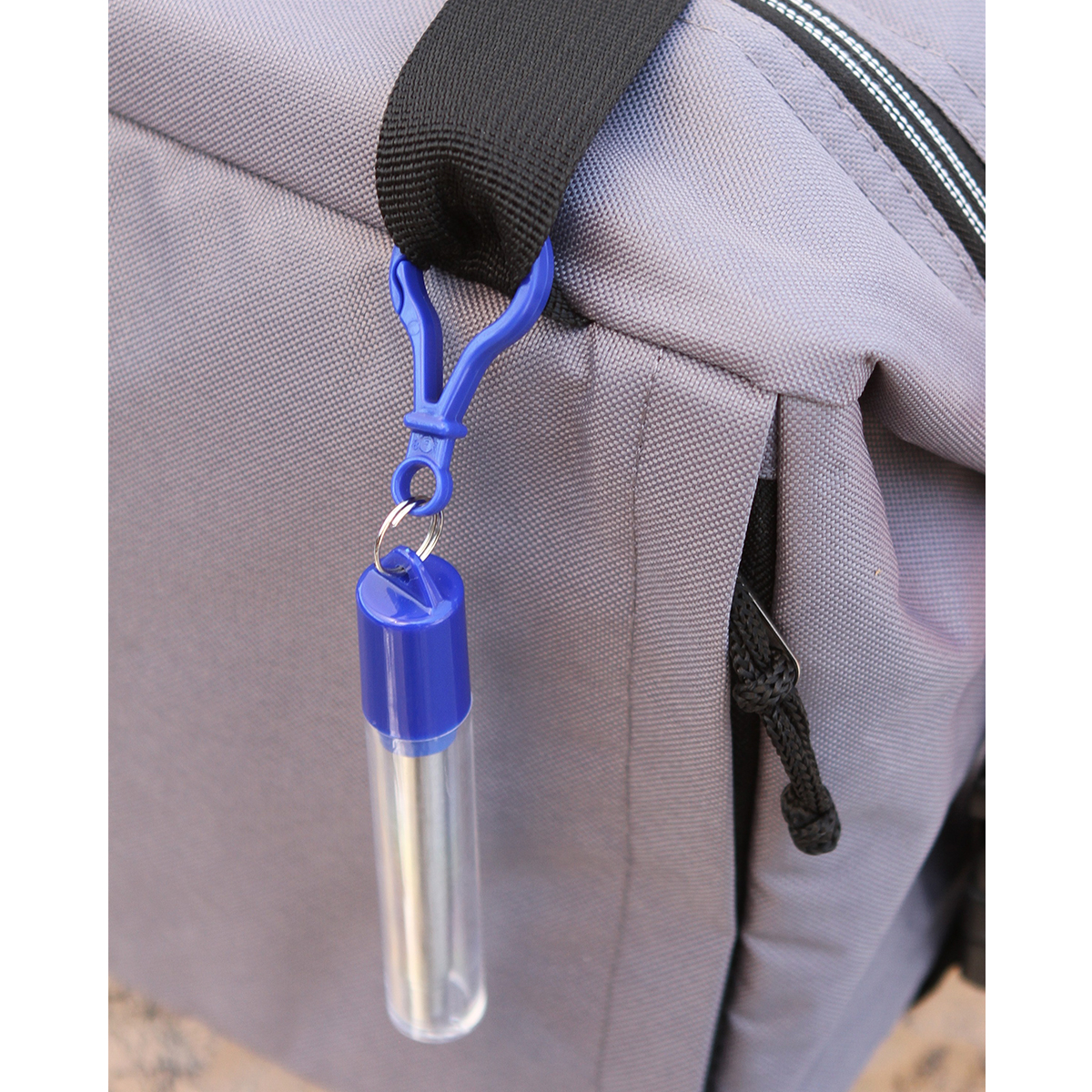 Popote metálico. - Popote retráctil reutilizable de acero inoxidable, contiene cepillo para fácil limpieza y practico estuche de acrílico con arnés para llevarlo a todas partes, se puede grabar en el popote y cuenta con un área amplia para impresión en el estuche. Son ideales para viajar y responsables con el medio ambiente.
