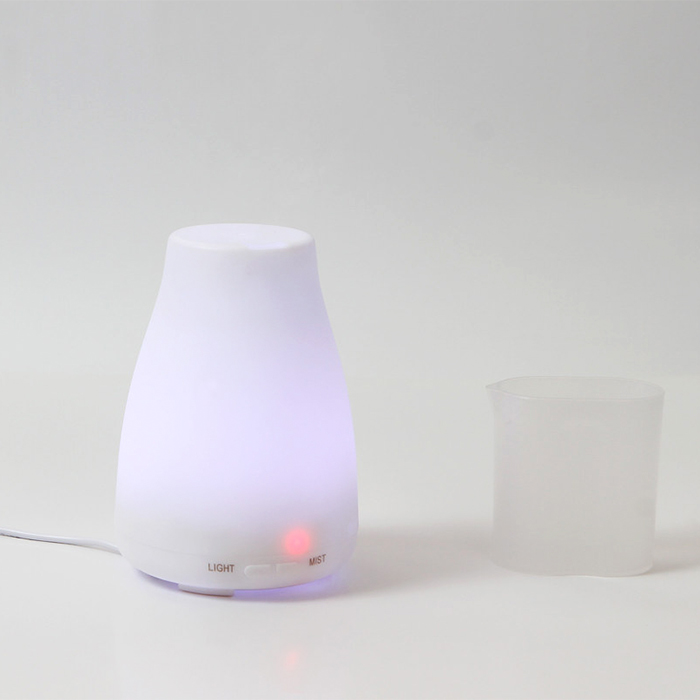 Lámpara Jitra. - Lámpara led con difusor para aceites esenciales, 7 cambios de luz con brillo ajustable, la lámpara y el difusor pueden utilizarse por separado, carga a través de adaptador de corriente. Incluye caja de cartón individual. Capacidad de 100 ml.