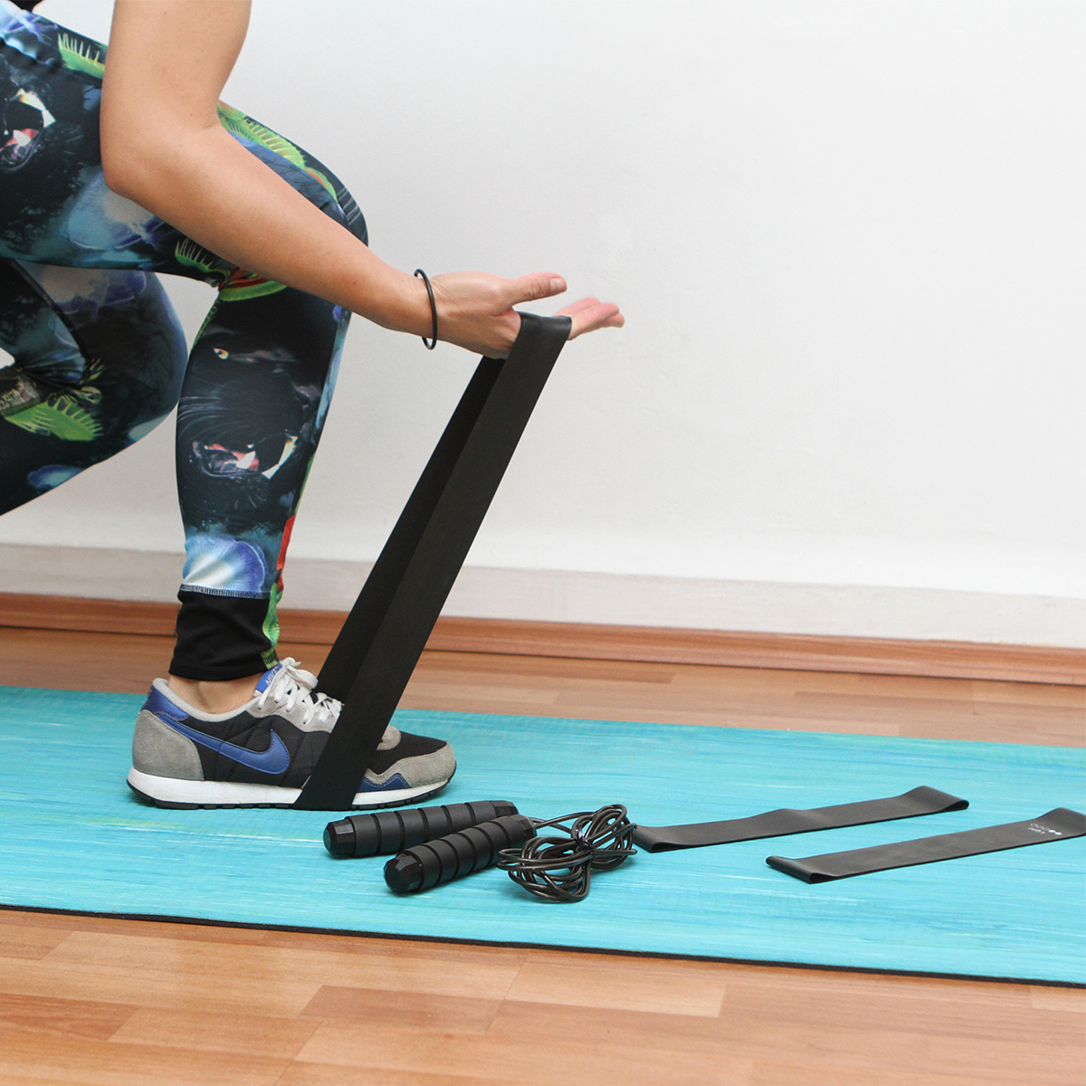 Set de Ejercicio Bogor. - Set fitness con 1 banda elástica de 30x5 cm y 1 cuerda de 3 m; ambas fabricadas en caucho. Incluye bolso de malla con cordón y broche de seguridad. Ideal para llevarlo contigo siempre por su practico tamaño.
