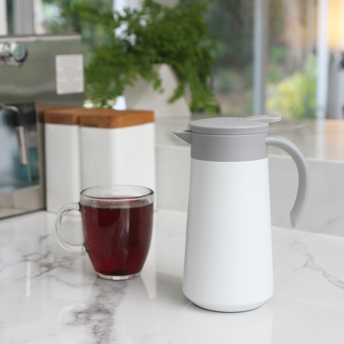 Jarra Pastavy. - Jarra doble pared de acero inoxidable, tapar y asa de polipropileno. Fabricado en materiales de grado alimenticio, mantiene bebidas calientes por un largo tiempo, no usar en microondas. Capacidad de 800 ml. Incluye caja de cartón individual.