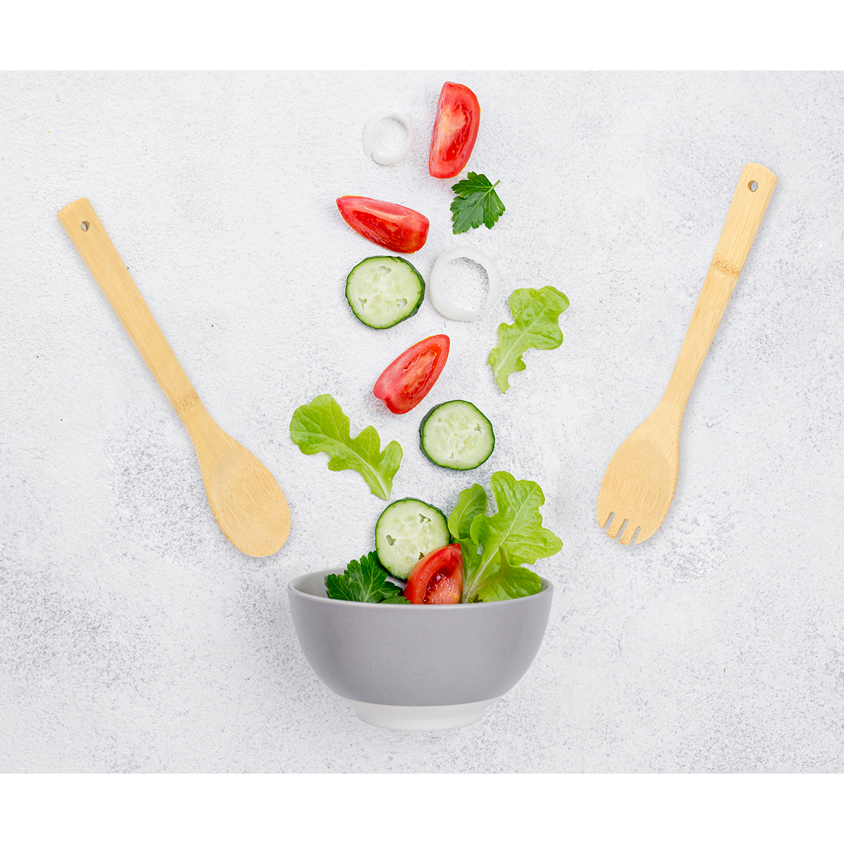 Set Holbak. - Set de cubiertos para ensalada fabricado en madera de bambú barnizada. Incluye cuchara y tenedor, con perforación para colgar. Cuenta con estuche con correa ajustable para cerrar.