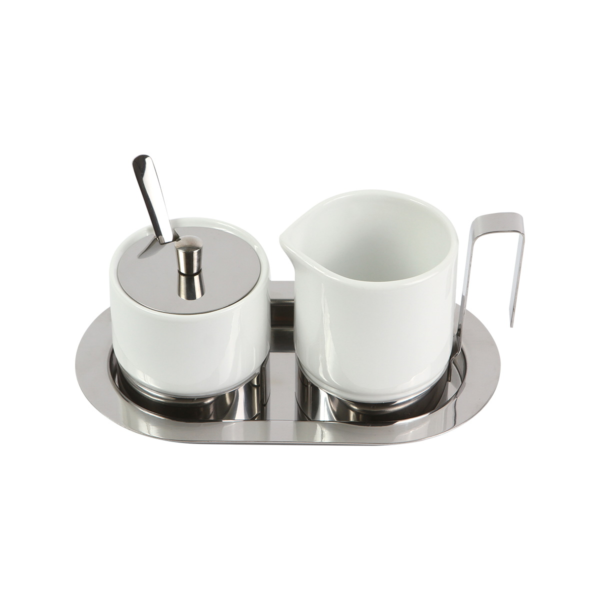 Juego Falster. - Juego de café, fabricado en cerámica y acero inoxidable. Incluye taza para crema o leche con capacidad de 300 ml, azucarera (con tapa) con capacidad de 200 ml y cuchara.