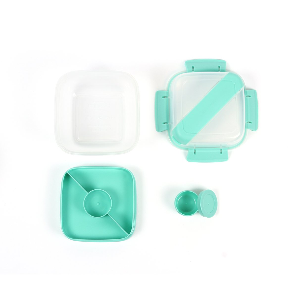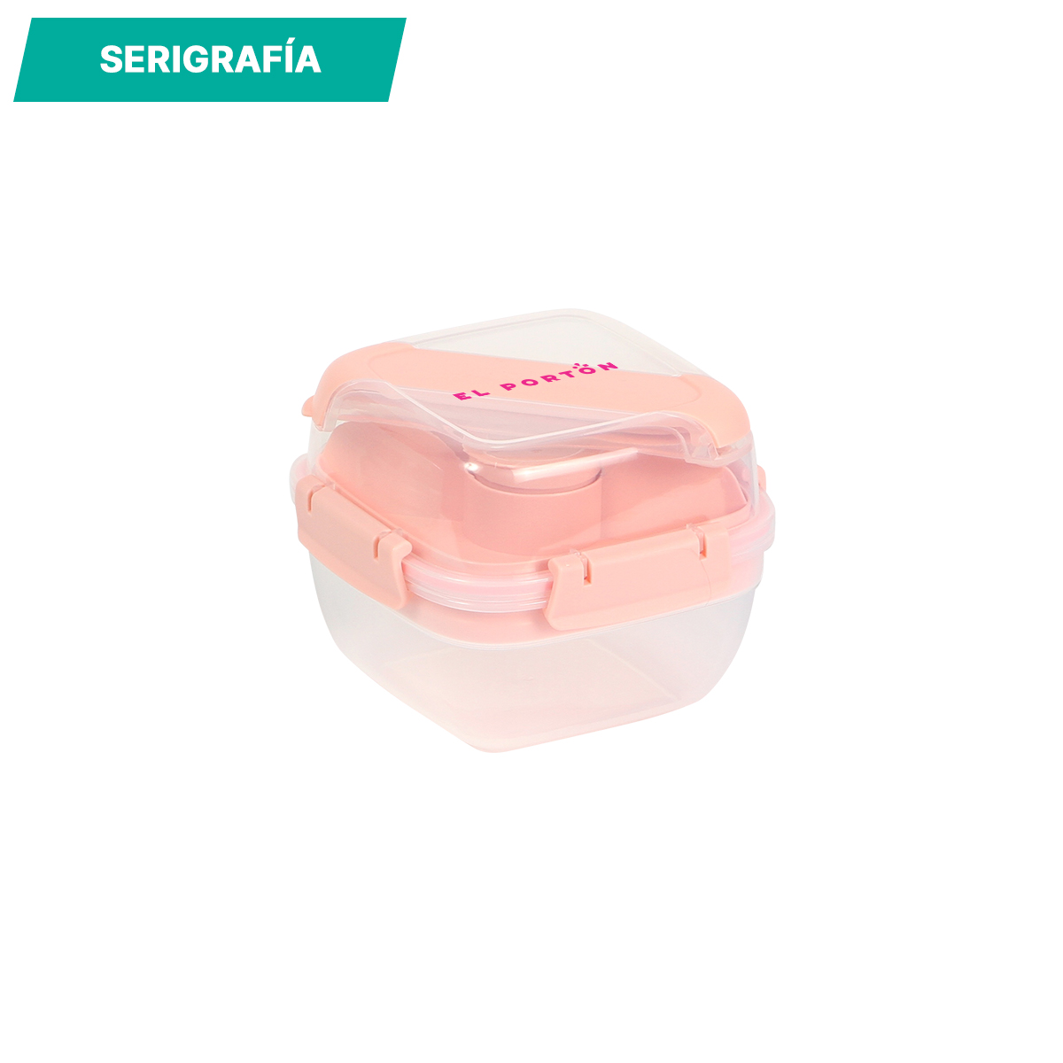 Contenedor Bauen. - Contenedor de alimentos hermético fabricado en polipropileno y silicón. Es resistente e ideal para mantener tus comidas frescas y seguras. Con diseño compacto y práctico, es perfecto para llevar al trabajo o escuela. Incluye una cuchara, un tenedor, un cuchillo, un contenedor de alimentos con tapa con divisores y un contenedor pequeño tipo salsero.