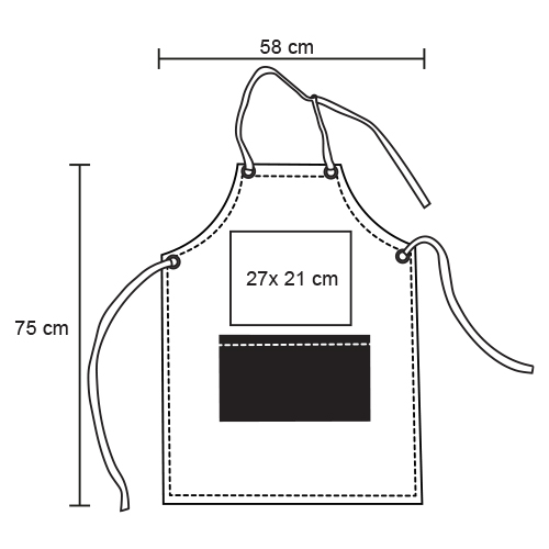 CUCINE Delantal de loneta con dos bolsas frontales, 4 arillos metálicos, correa superior ajustable y dos cintas laterales para ajuste en cintura.