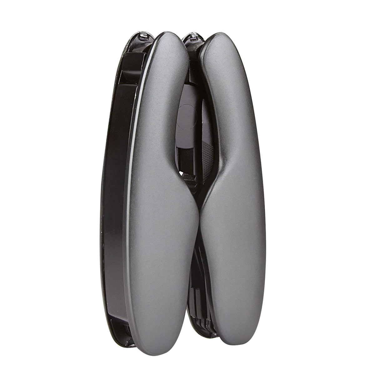 PINZAS YAVIA - Pinzas con 9 funciones. Incluye lima para uñas, navaja, desarmador de cruz, destapador con desarmador plano, pinzas, navaja de hoja curva, desarmador plano, serrucho, navaja dentada. Incluye funda.