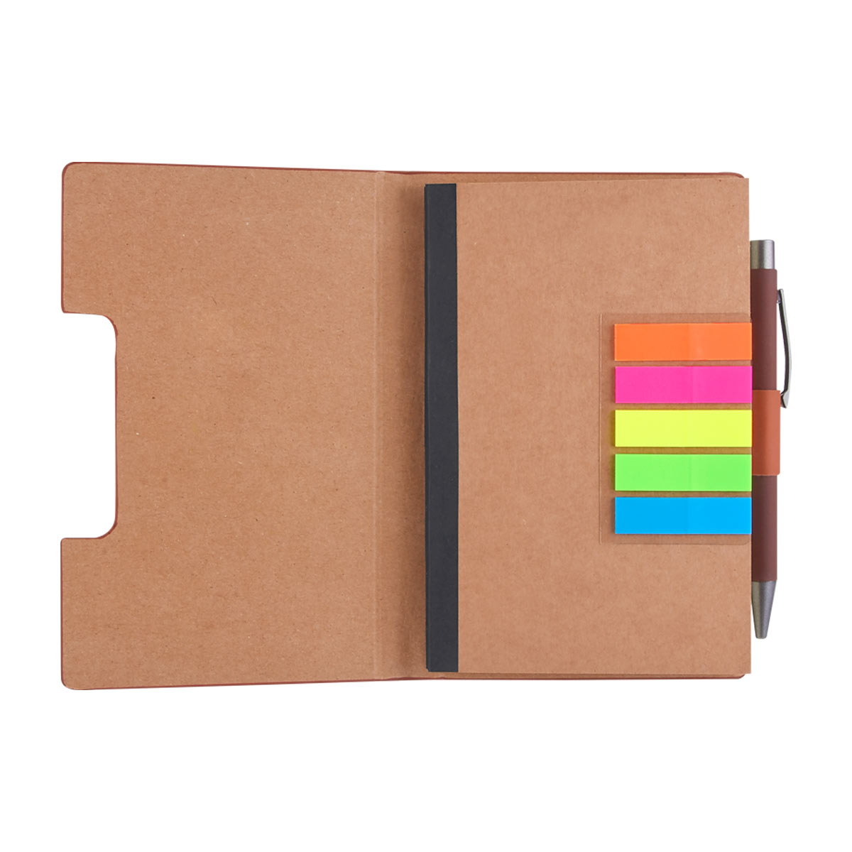 LIBRETA VINNYTSIA - Libreta con 70 hojas de raya. Incluye bolígrafo y notas adheribles de colores.