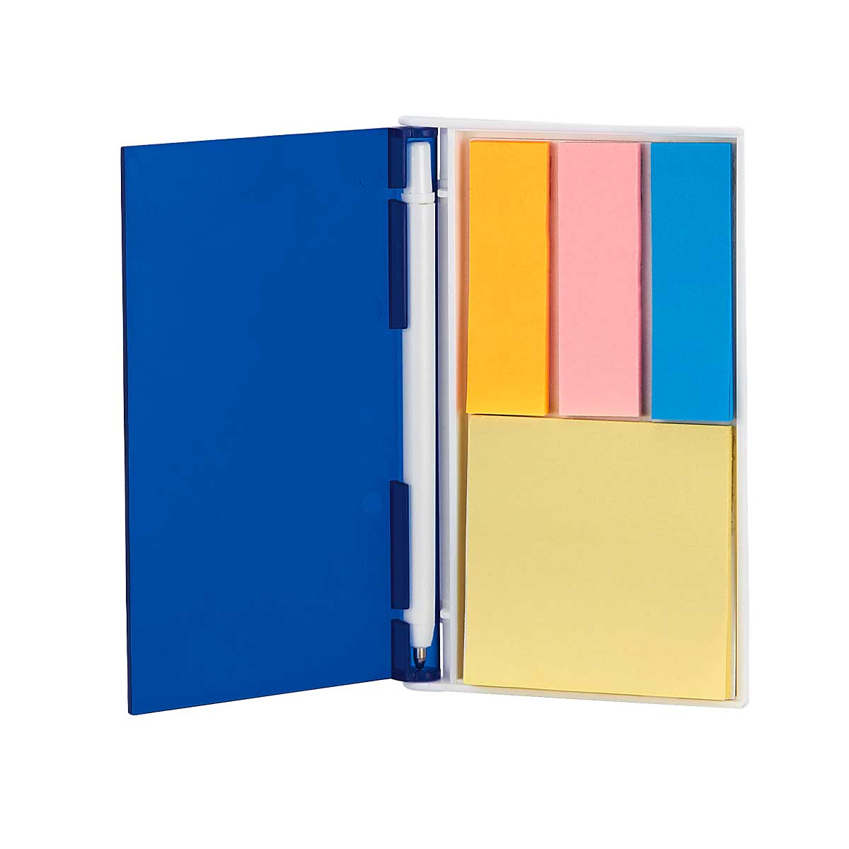 PORTA NOTAS VENTALL - Incluye mini bolígrafo, 20 notas adheribles amarillas y banderillas de 3 colores.