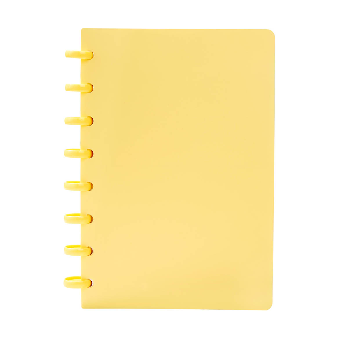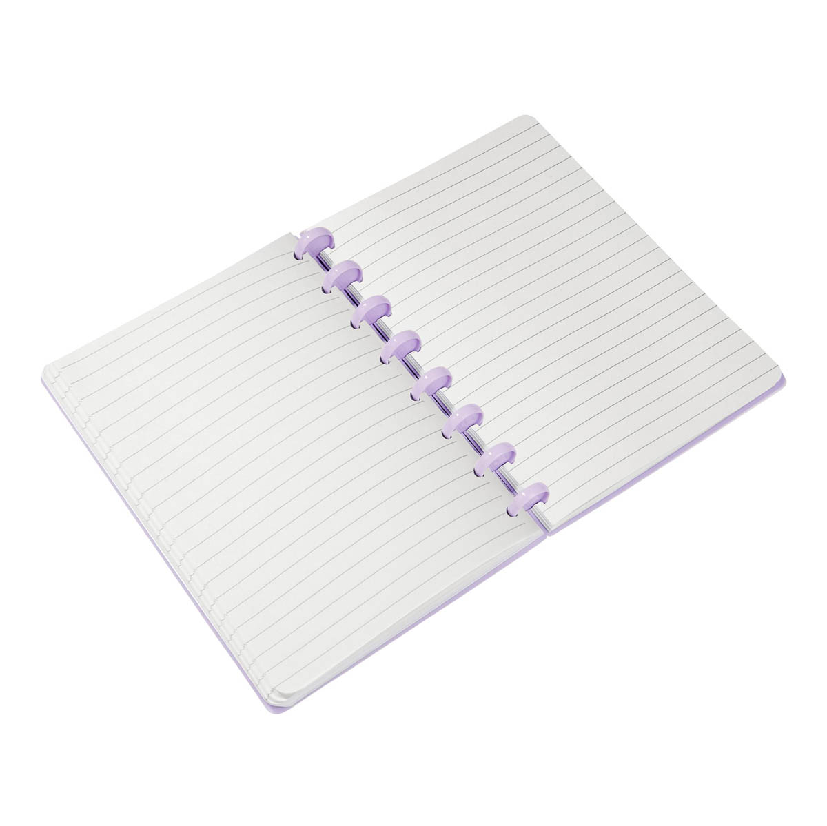 LIBRETA IKOTI - Libreta con 80 hojas a rayas. Cubierta de plástico. Incluye 8 aros de plástico que funcionan como espiral y permite la incorporación de hojas removibles, lo que facilita la reorganización de tus apuntes cuantas veces lo desees. Ideal para notas, bocetos o planificación, esta libreta combina funcionalidad y un diseño innovador.
