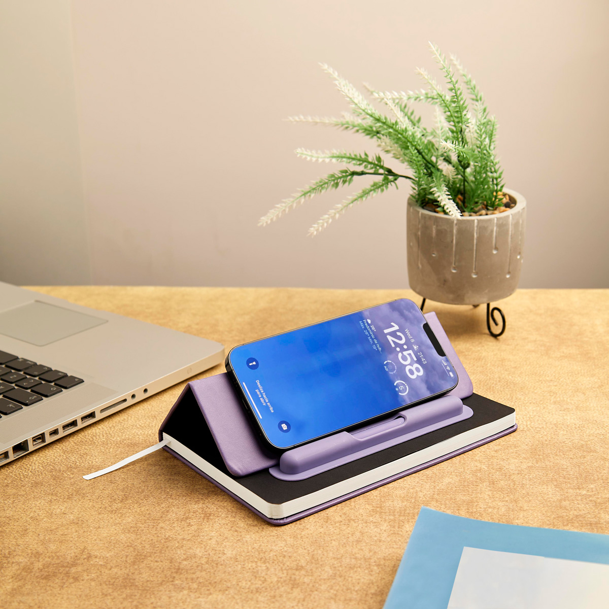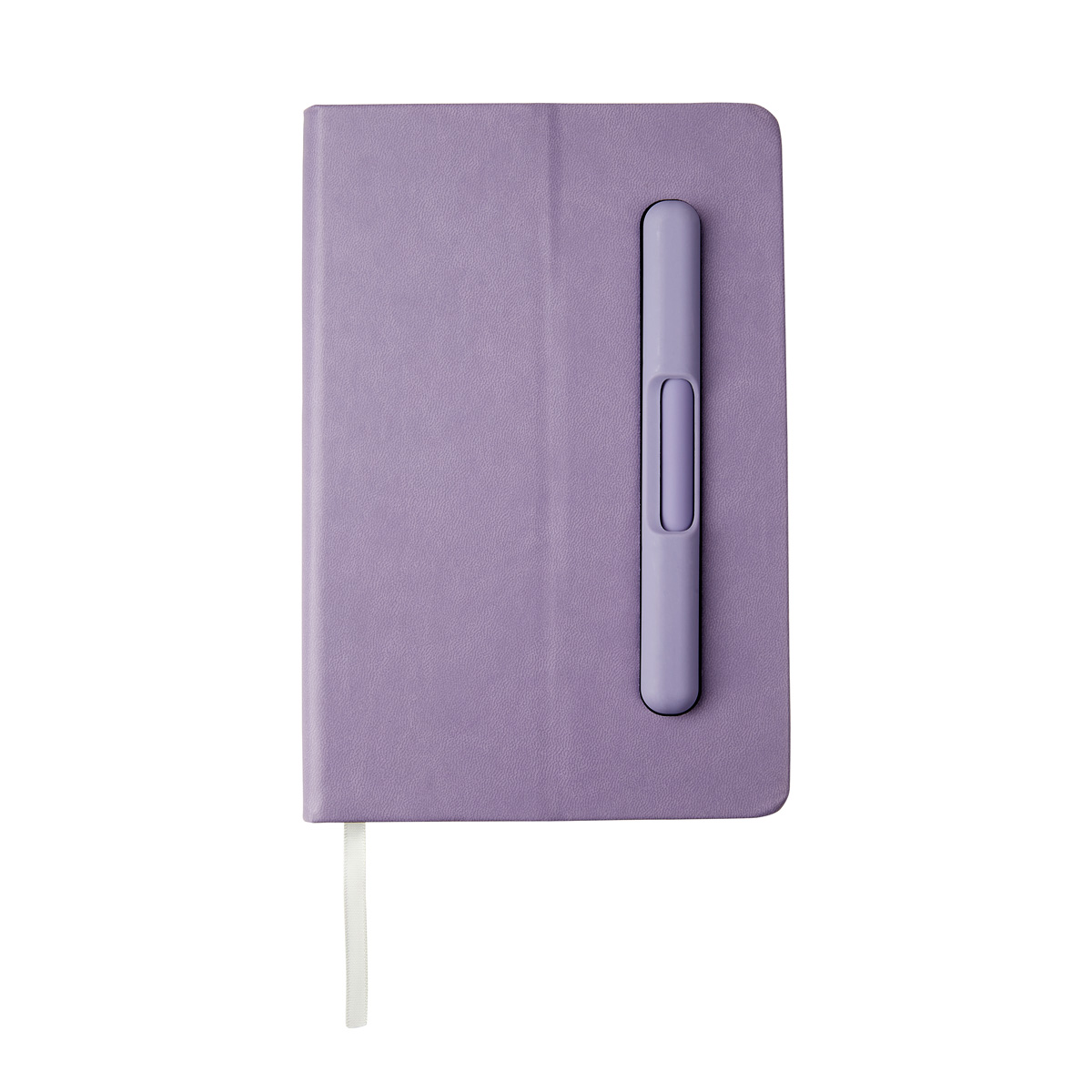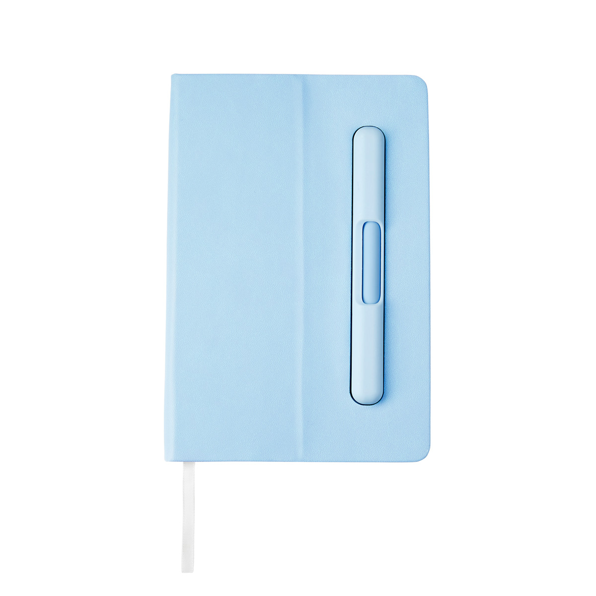 LIBRETA LYRIKA - Libreta con 96 hojas a raya. Pasta plegable que funciona como base para smartphone. Cubierta rígida de curpiel que incluye un bolígrafo desmontable y listón separador de hojas. Con este práctico set, estarás siempre listo para plasmar tus ideas en cualquier momento. Este producto por ser últimas piezas puede presentar alguna variación, no se aceptan devoluciones.