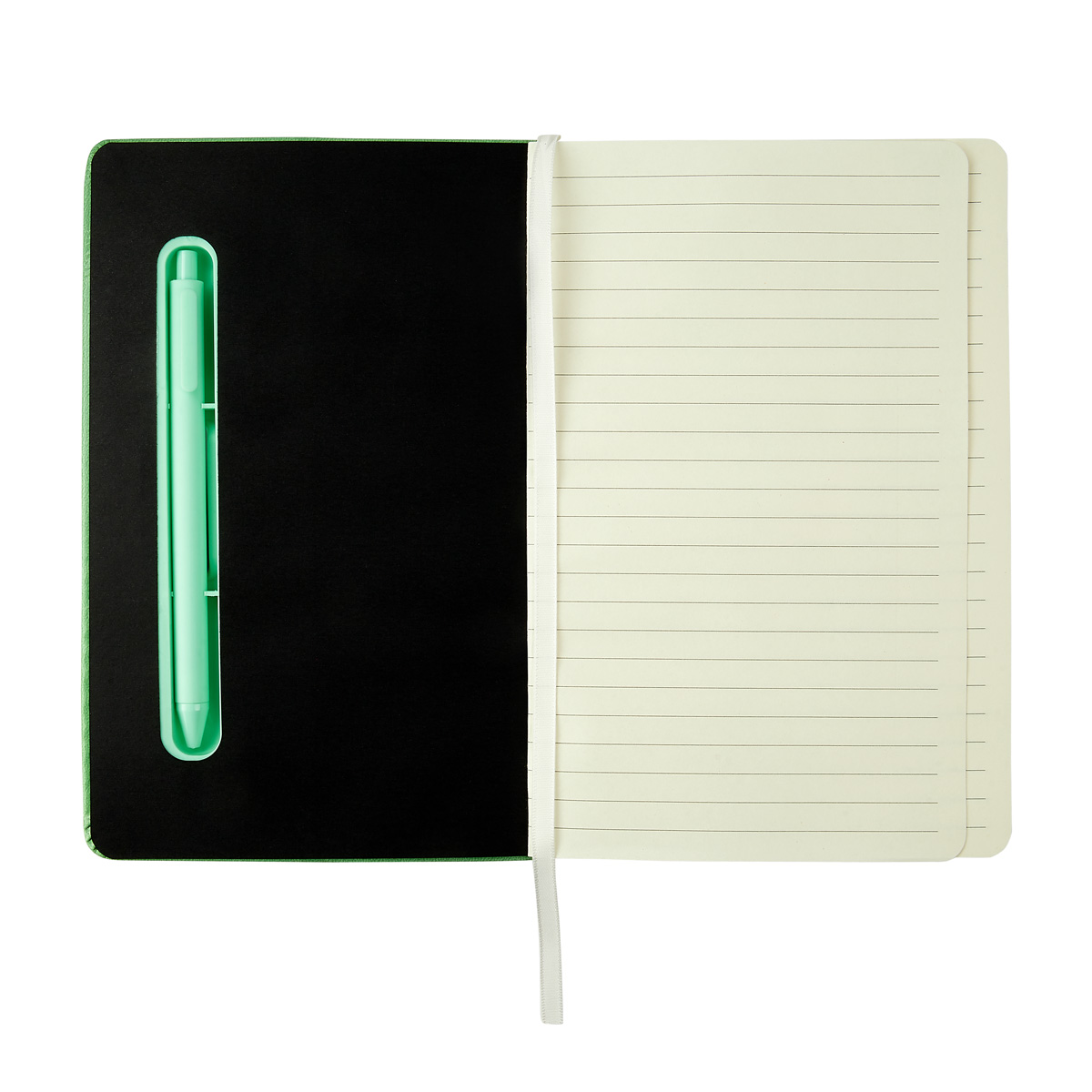 MATERIAL: Curpiel / Papel / Plástico MEDIDAS: 14 x 21 cm Libreta / 1 x 14.5 cm Bolígrafo IMPRESION: Termograbado / Serigrafía MED. EMPAQUE: 40.5 x 23 x 30 cm PESO EMPAQUE: 4.88 Kg PIEZAS EMPAQUE: 40