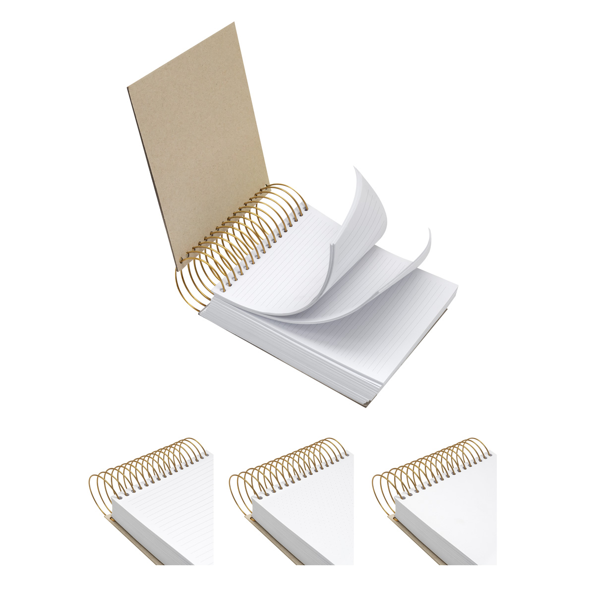 LIBRETA OMENA - Libreta con 100 hojas a raya, 100 hojas punteadas y 100 hojas en blanco. Con cubierta rígida de cartón y un angosto espiral metálico, esta libreta permite una apertura completa y un manejo cómodo. La versatilidad de sus hojas la hace ideal para notas, esquemas o dibujos.