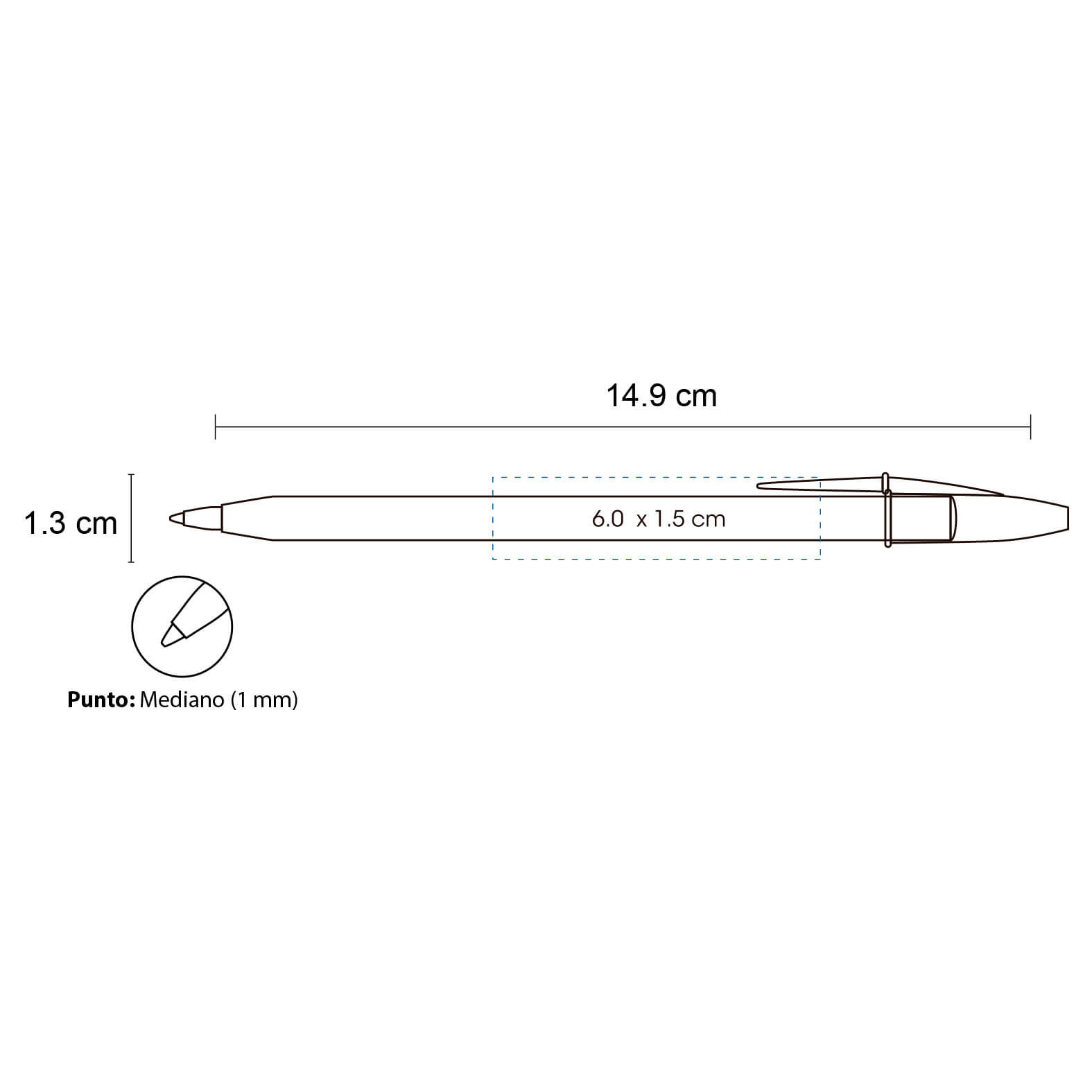 MEDIDAS: 1.30x14.90 IMPRESION: Serigrafía MED. EMPAQUE: 48.00x14.00x15.00 PESO EMPAQUE: 3.5 PIEZAS EMPAQUE: 500
