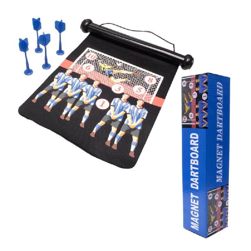 Juego de dardos tema soccer. Medidas: 33.5cm x 24.5 cm Material: Plástico. Empaque: Caja de cartón.