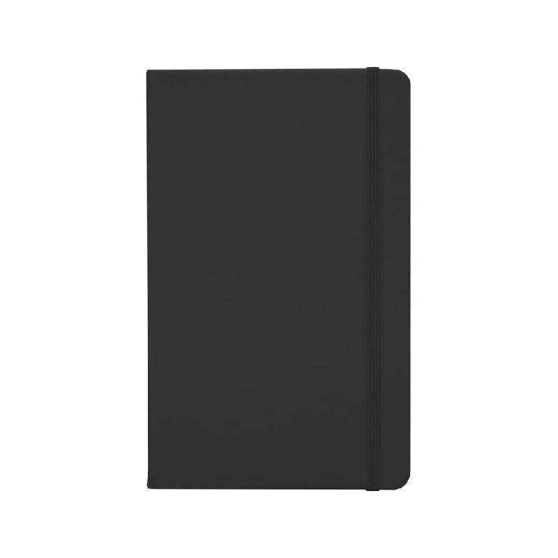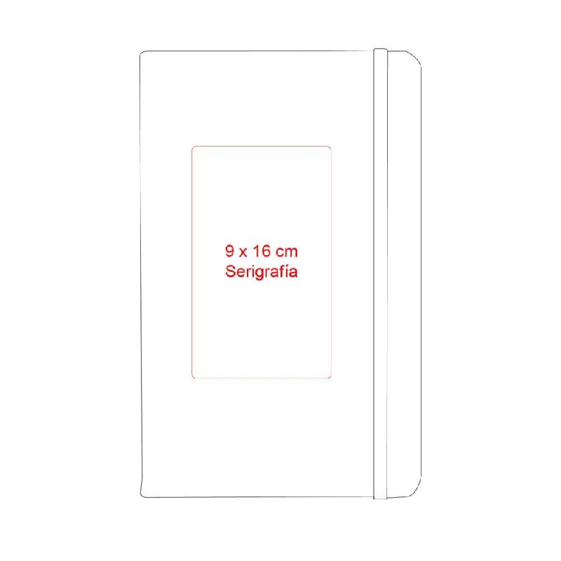 Libreta de pasta dura, con 80 hojas de raya y cinta elástica para cerrar. Medidas: 21 x 13 cm Empaque: Bolsa de celofán.