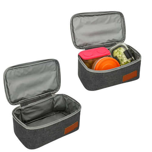 PEANUT Lonchera rectangular con interior reforzado en plástico y asa superior en curpiel.