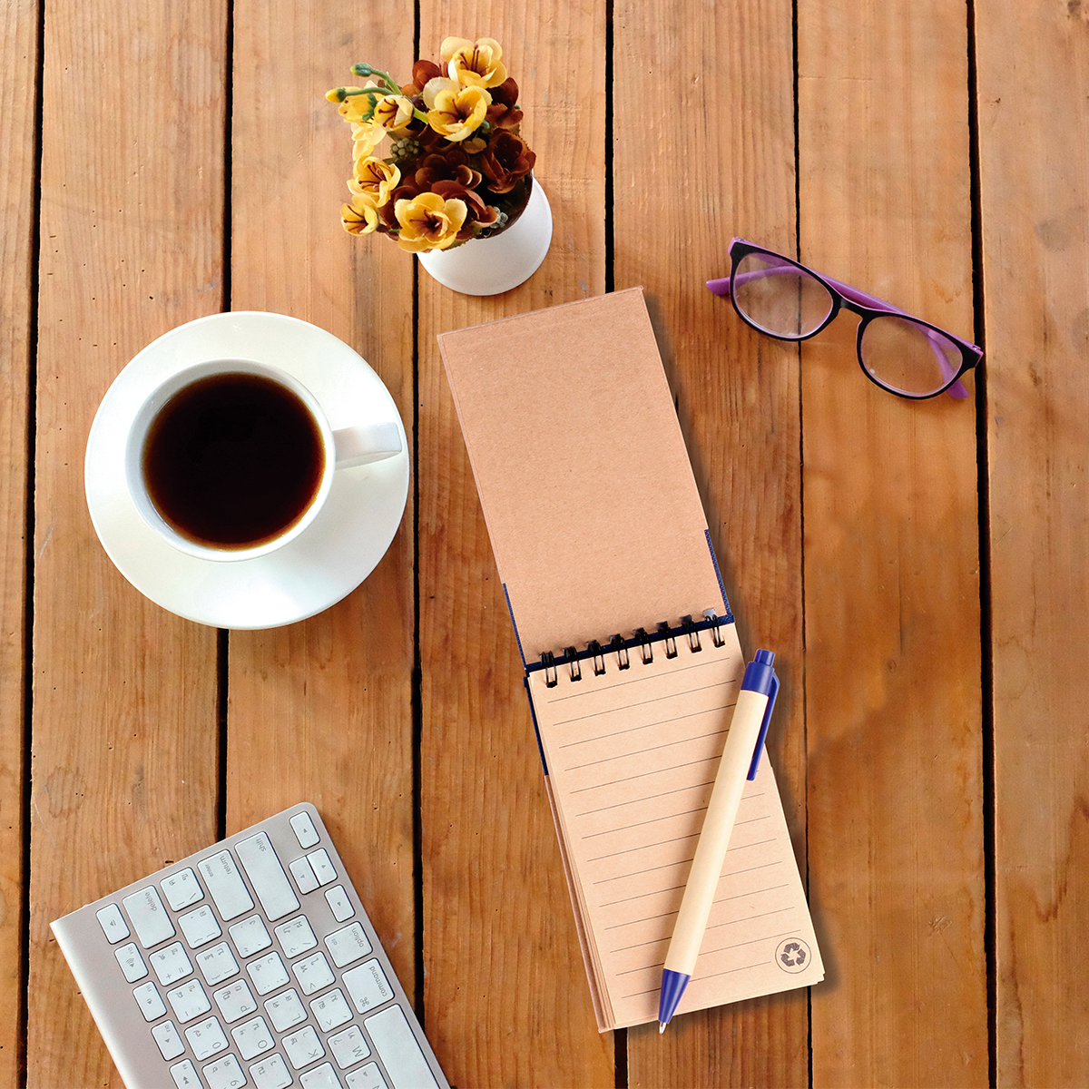 Libreta ecológica Marsella. - Libreta ecológica pocket que cuenta con resorte. La libreta cuenta con detalle de color en la parte superior, incluye porta bolígrafo y bolígrafo con tinta negra. Detalles de color que van a juego con los detalles de la libreta. Incluye resorte en la parte inferior para cerrar la libreta y mantener protegidas las hojas.