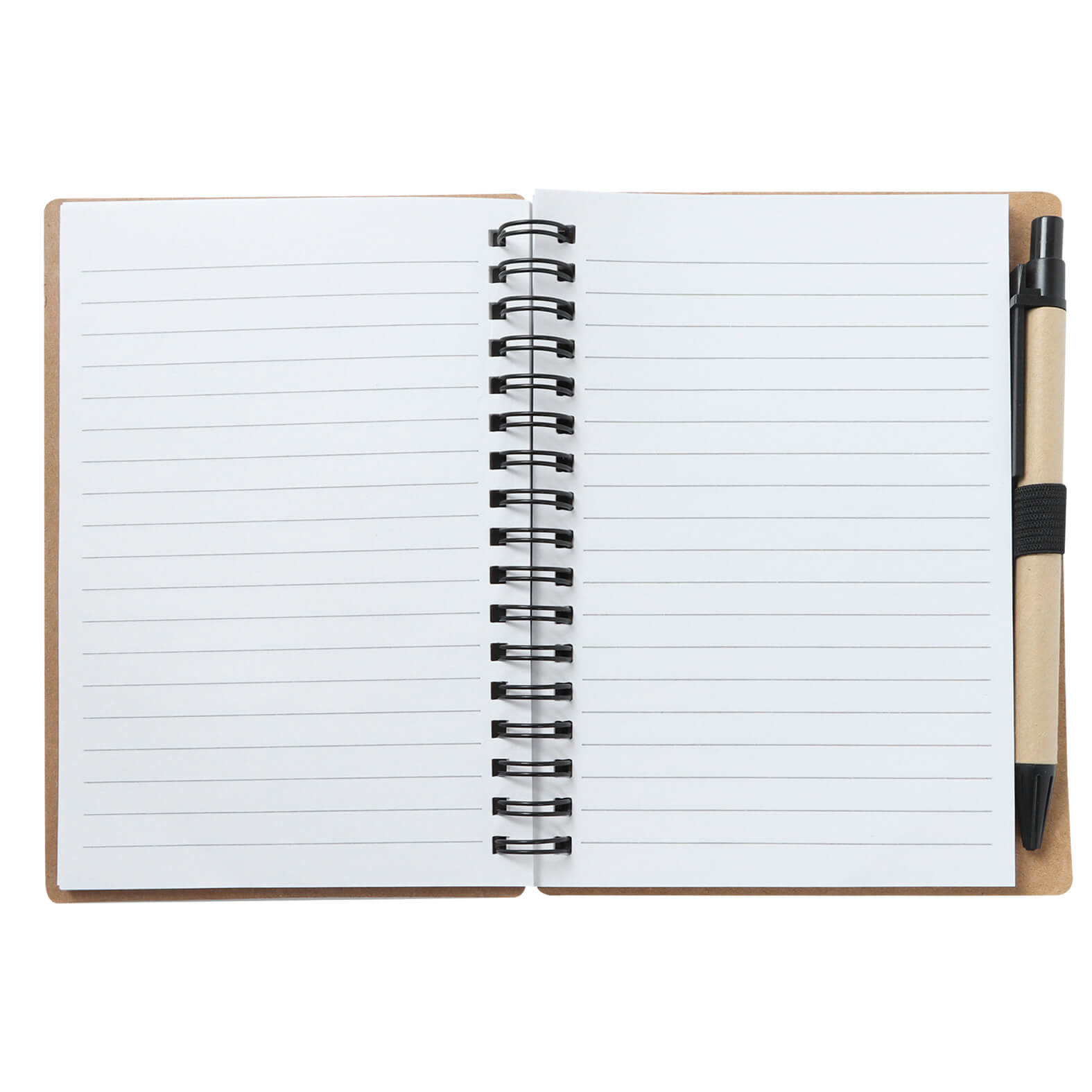 OTZA Libreta ecológica de cartón con espiral y plástico protector, incluye: 5 banderas adheribles, bolígrafo, porta tarjetas, block de notas y 70 hojas de raya.
