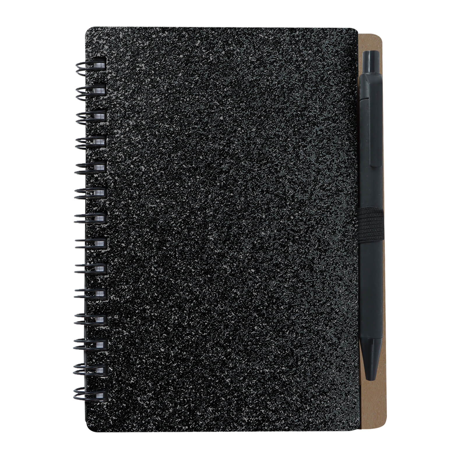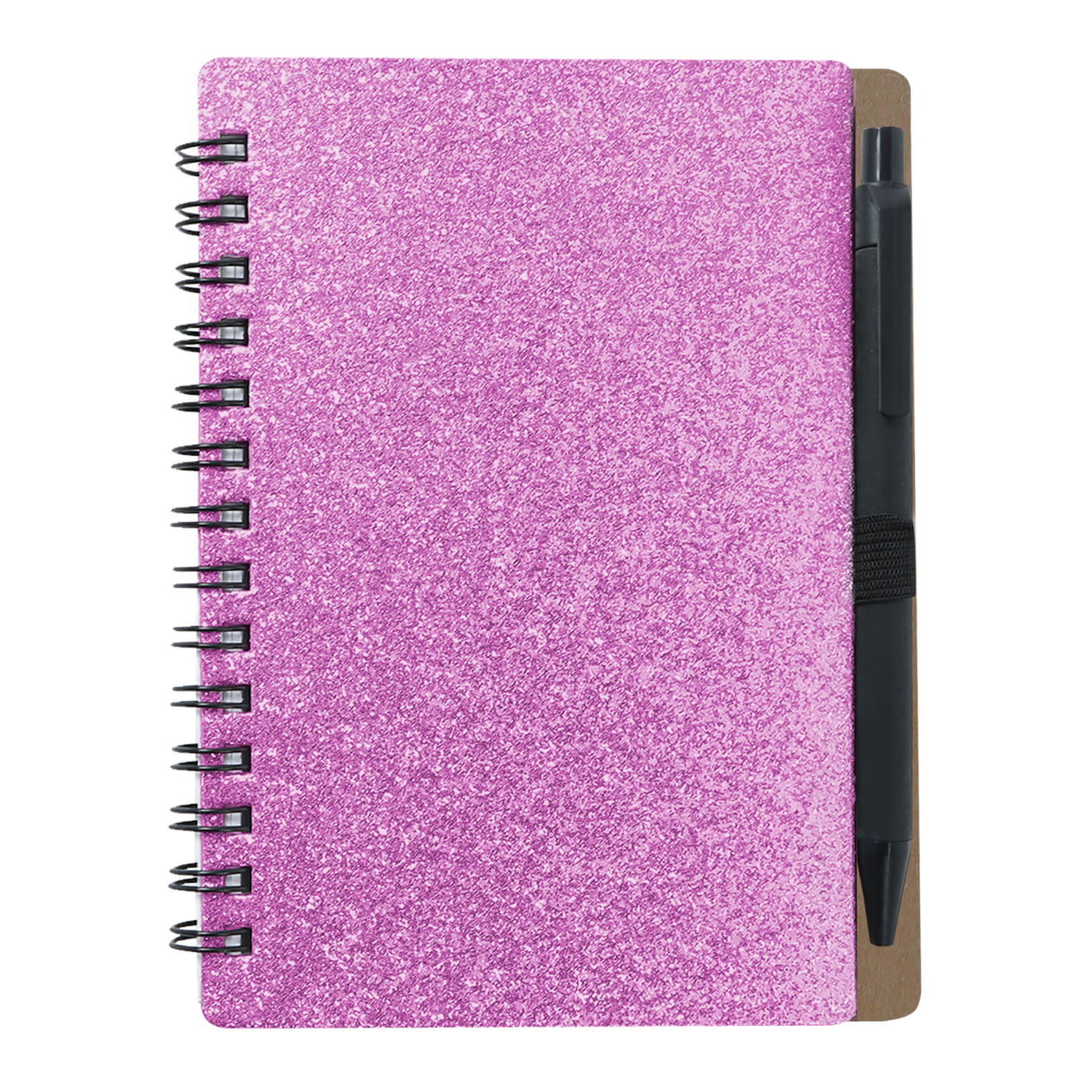 JUN Mini libreta ecológica con espiral, purpurina, bolígrafo y 70 hojas de raya.
