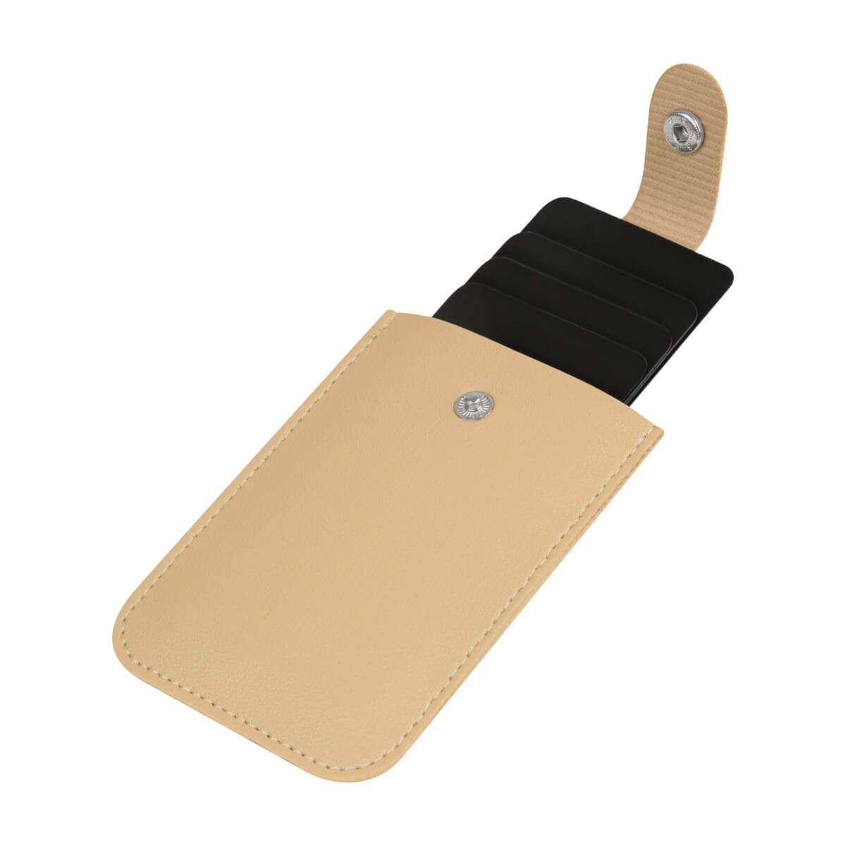 TARJETERO JUNIUS - Tarjetero con interior deslizable y cerrado con broche para mayor seguridad. Cuenta con 4 prácticos separadores plastificados que facilitan la clasificación y acceso rápido. Compacto, ligero y práctico para llevar en tu día día.