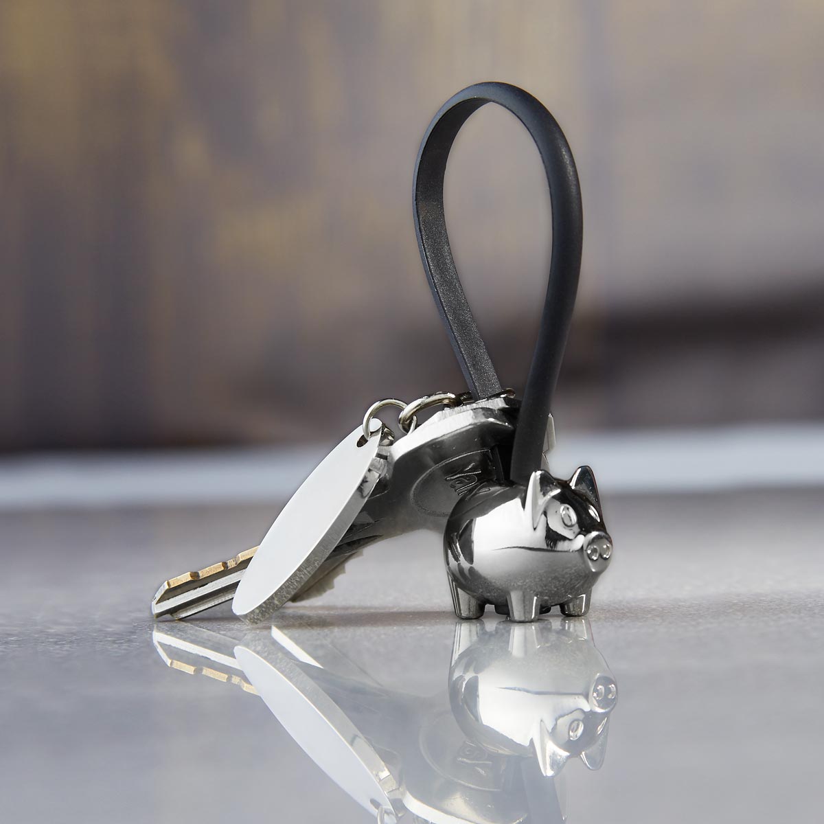 LLAVERO PUERQUITO CON PLACA - Incluye placa metálica para grabado y caja individual.