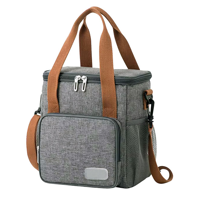 Lunchera Dressel Lunchera Dressel Interior en aluminio insulado. Etiqueta frontal para personalizar. Bolsa al frente con cierre en zipper. Bolsillos laterales en tela mesh. Asa de mano plana y correa larga ajustable. Colores: Gris