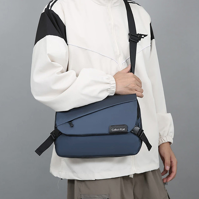 Maletín Falcao Maletín Falcao l Organizadores interiores y compartimento para tablet. l Bolsillo al frente y posterior con cierre en zipper. l Cierres laterales en hebilla l Impermeable al agua. l Incluye llavero interior. l Etiqueta al frente para personalizar. l Cómoda correa larga ajustable con refuerzo acolchado. l Colores: Azul y Gris