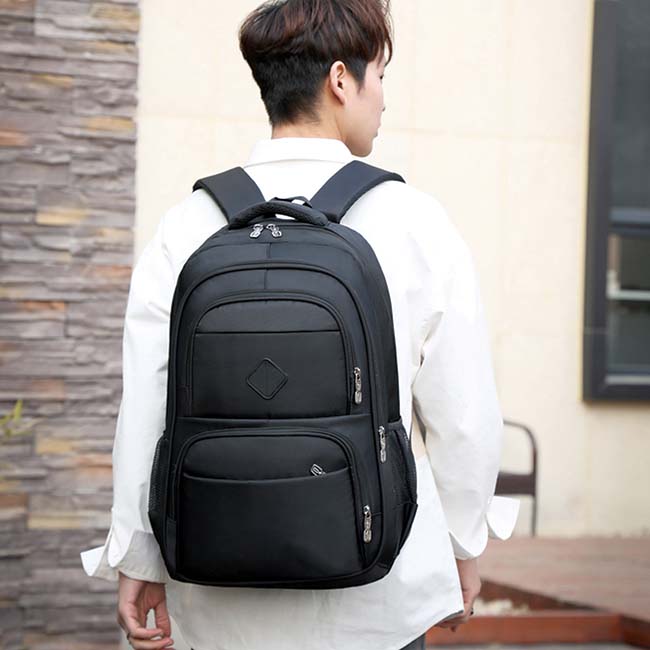 Backpack Hogan Backpack Hogan Tres bolsos frontales con cierre en zipper. Bolsillos laterales en tela mesh. Impermeable al agua. Etiqueta al frente para personalizar Asa de mano reforzada y acojinada. Correas ajustables y acojinadas. Compartimento interior para laptop. Colores: Negro.