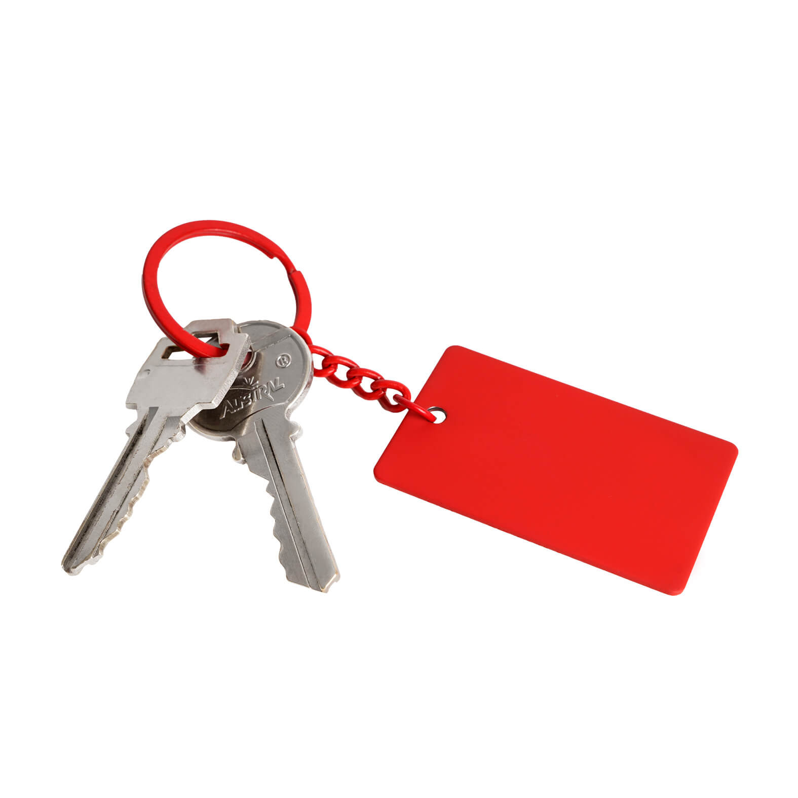 NUBLAR Llavero con placa rectangular de color sólido, acabado rubber, orillas redondeadas y aro reforzado.