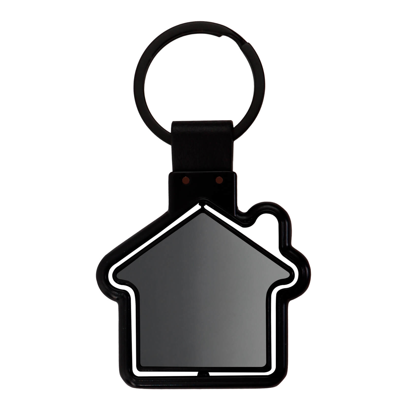VILLA Llavero de metal en forma de casa con silueta girable y acabado espejo.