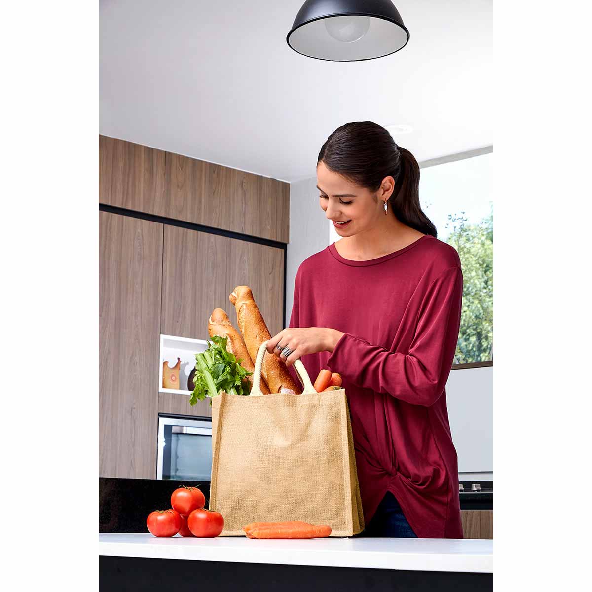 BOLSA ECOLÓGICA 90 G CON ASAS Y FUELLES LATERALES 35X37X18 VINO...