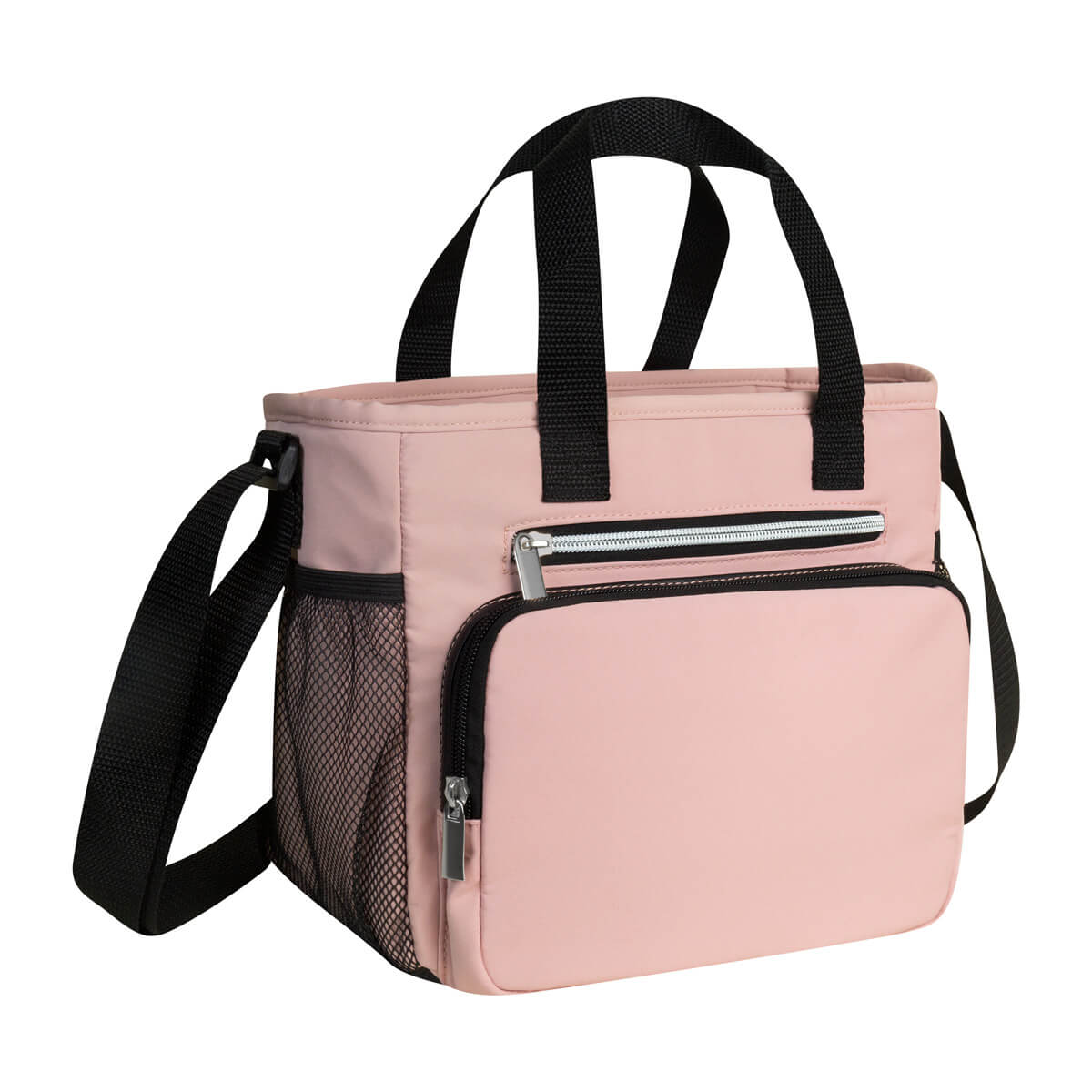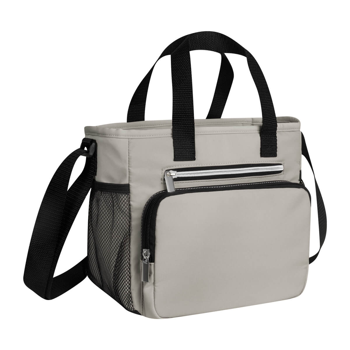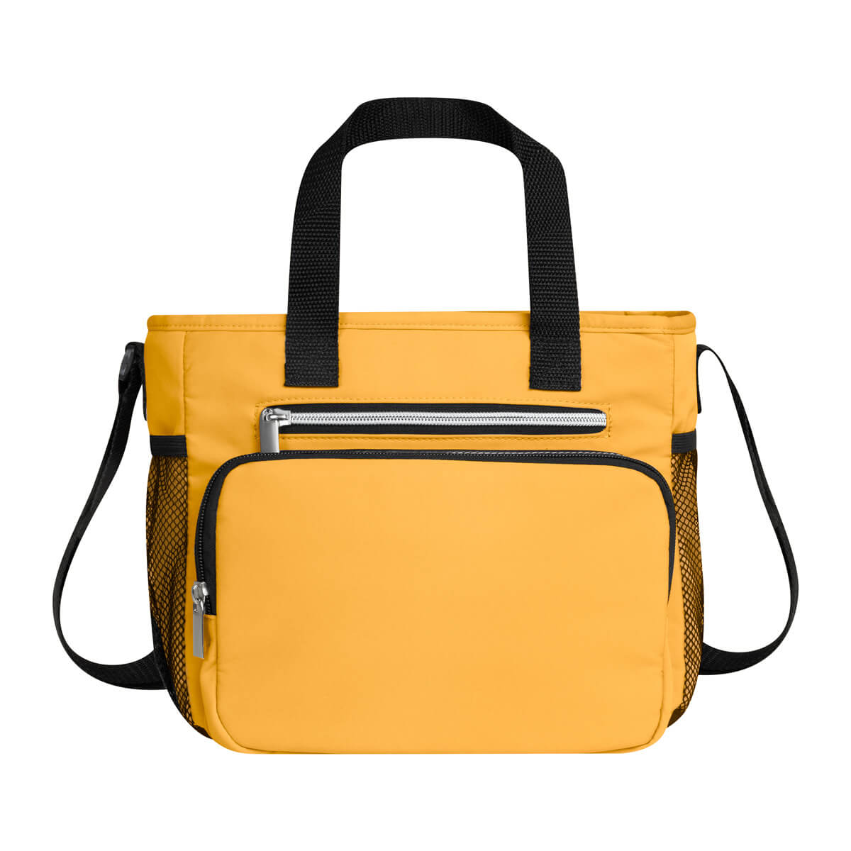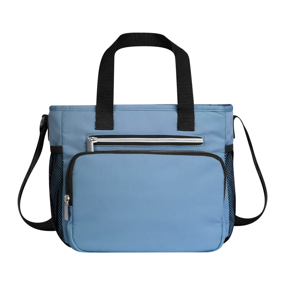 HIELERA SOLARI - Hielera con interior plastificado impermeable. Bolsa principal con cierre, doble bolsillo frontal y dos bolsillos laterales de malla. Su práctico diseño le brinda comodidad y practicidad para almacenar alimentos y bebidas. Incluye correa para hombro ajustable. Capacidad de 10 latas.