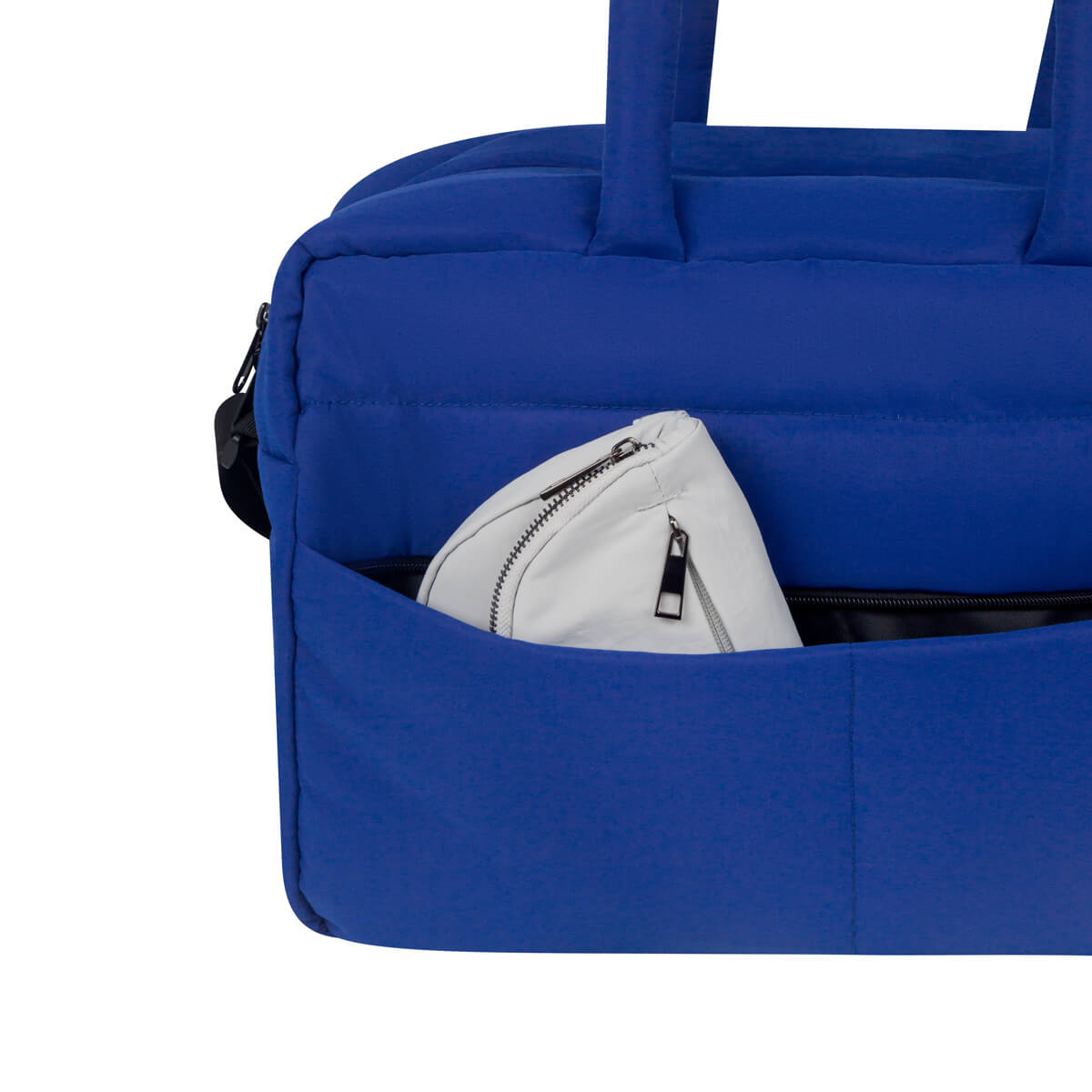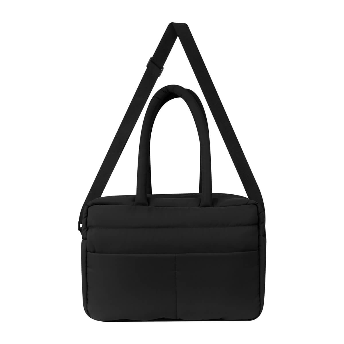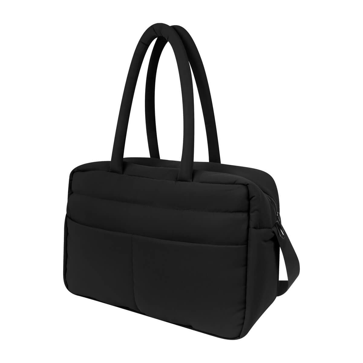 MALETA MAHAKI - Maleta con exterior acolchado, suave al tacto, ideal para llevar tus pertenencias con comodidad. Cuenta con asas de mano del mismo material, asa de poliéster ajustable para hombro y banda para colocar en trolley. Incluye un bolsillo frontal con cierre, compartimento principal amplio con cierre y organizadores internos para mantener el contenido en completo orden.