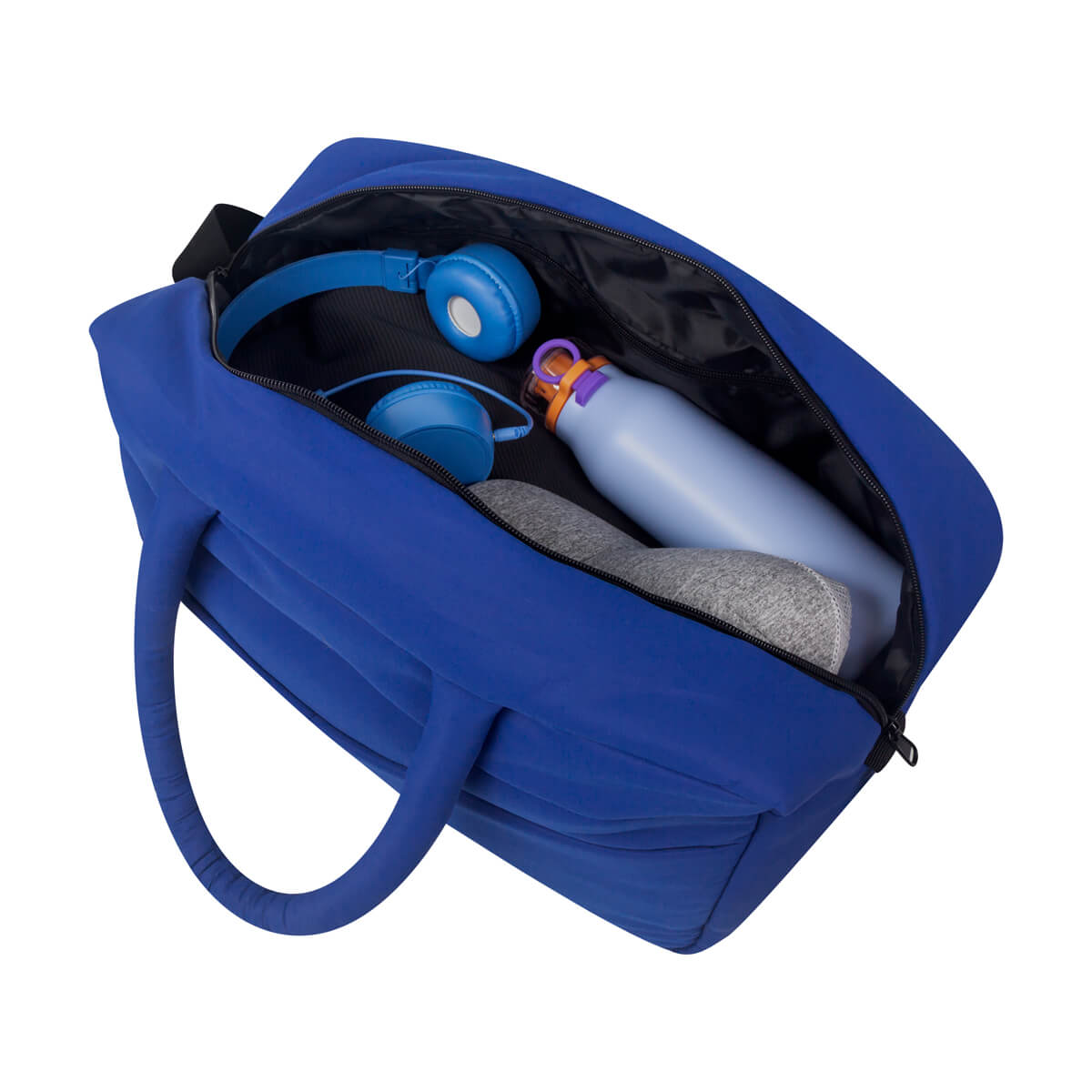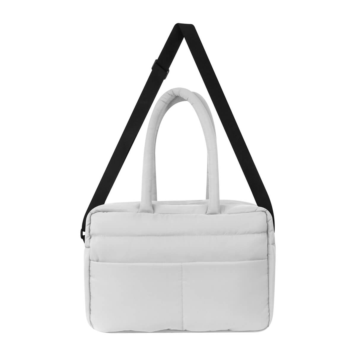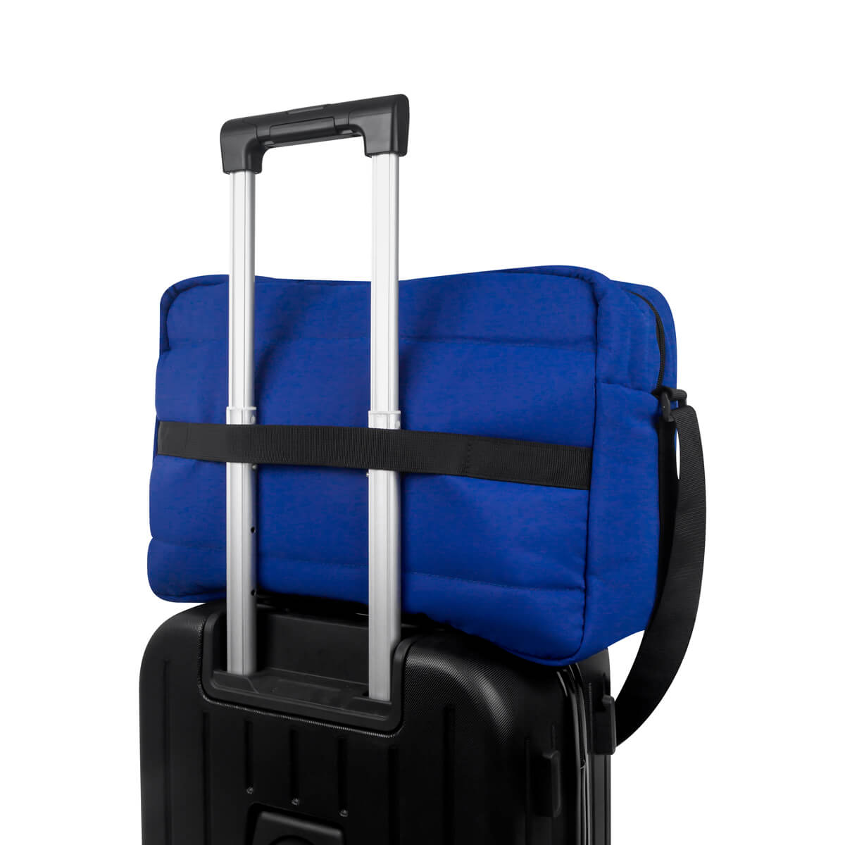 MALETA MAHAKI - Maleta con exterior acolchado, suave al tacto, ideal para llevar tus pertenencias con comodidad. Cuenta con asas de mano del mismo material, asa de poliéster ajustable para hombro y banda para colocar en trolley. Incluye un bolsillo frontal con cierre, compartimento principal amplio con cierre y organizadores internos para mantener el contenido en completo orden.