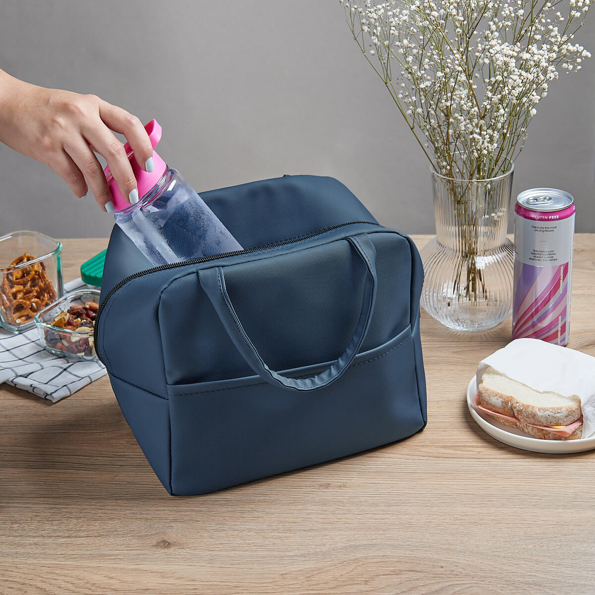 LONCHERA OTTAWA - Lonchera con interior plastificado. Fabricada en material tipo curpiel que combina elegancia y practicidad. Cuenta con un bolsillo principal con cierre, para mantener tus alimentos seguros y bien organizados. Además, tiene un bolsillo adicional en la parte frontal ideal para cubiertos, servilletas, snacks u objetos pequeños. Su acabado facilita su limpieza y le da un estilo moderno y atractivo. Su tamaño compacto la convierte en la opción ideal para llevar al trabajo, la escuela o cualquier actividad diaria. Capacidad 6 latas.