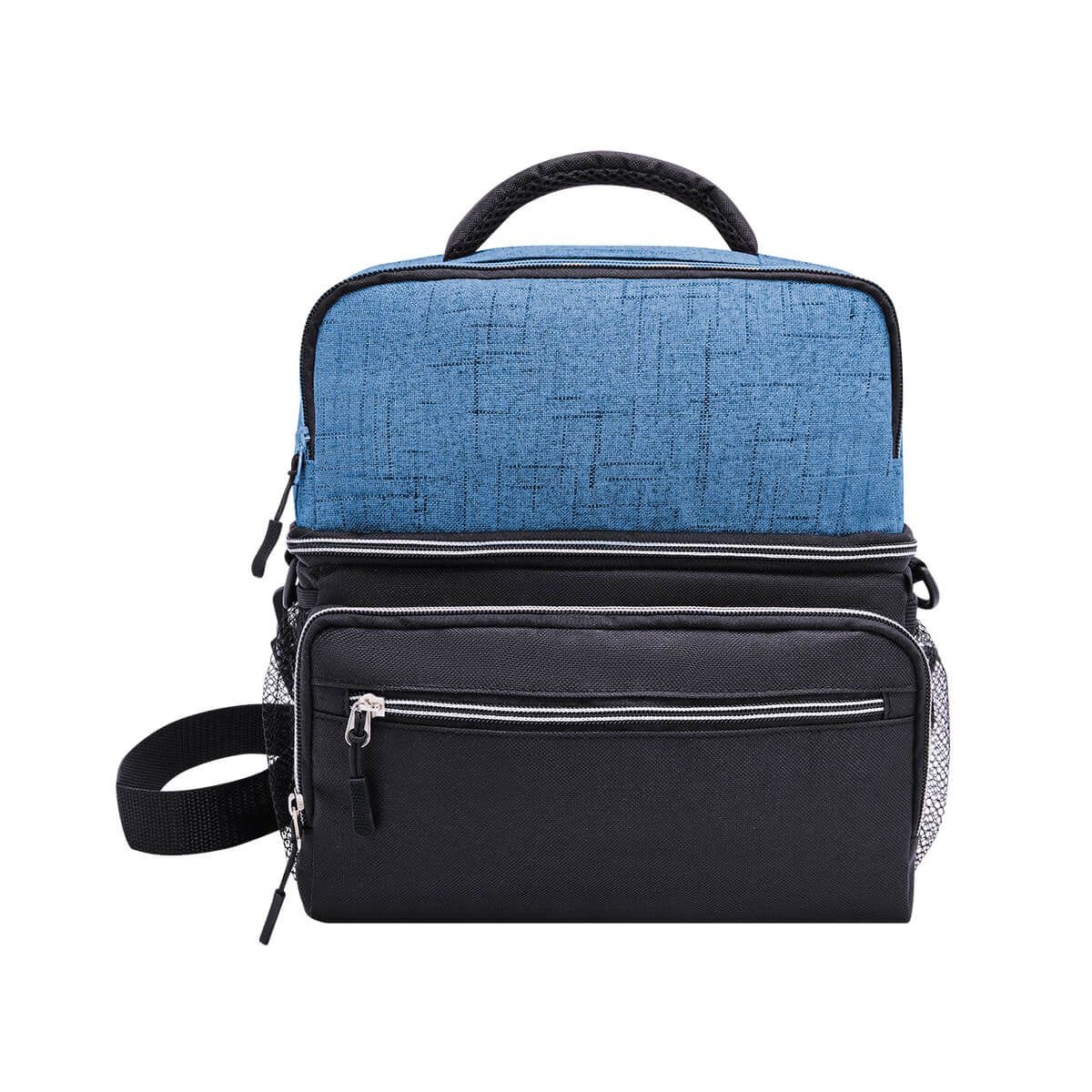 HIELERA GALO - Interior plastificado impermeable. Bolsa principal con cierre, 2 bolsillos frontales con cierre, bolsa frontal superior con cierre, 2 bolsas laterales de red. Incluye correa ajustable. Capacidad de 12 latas.