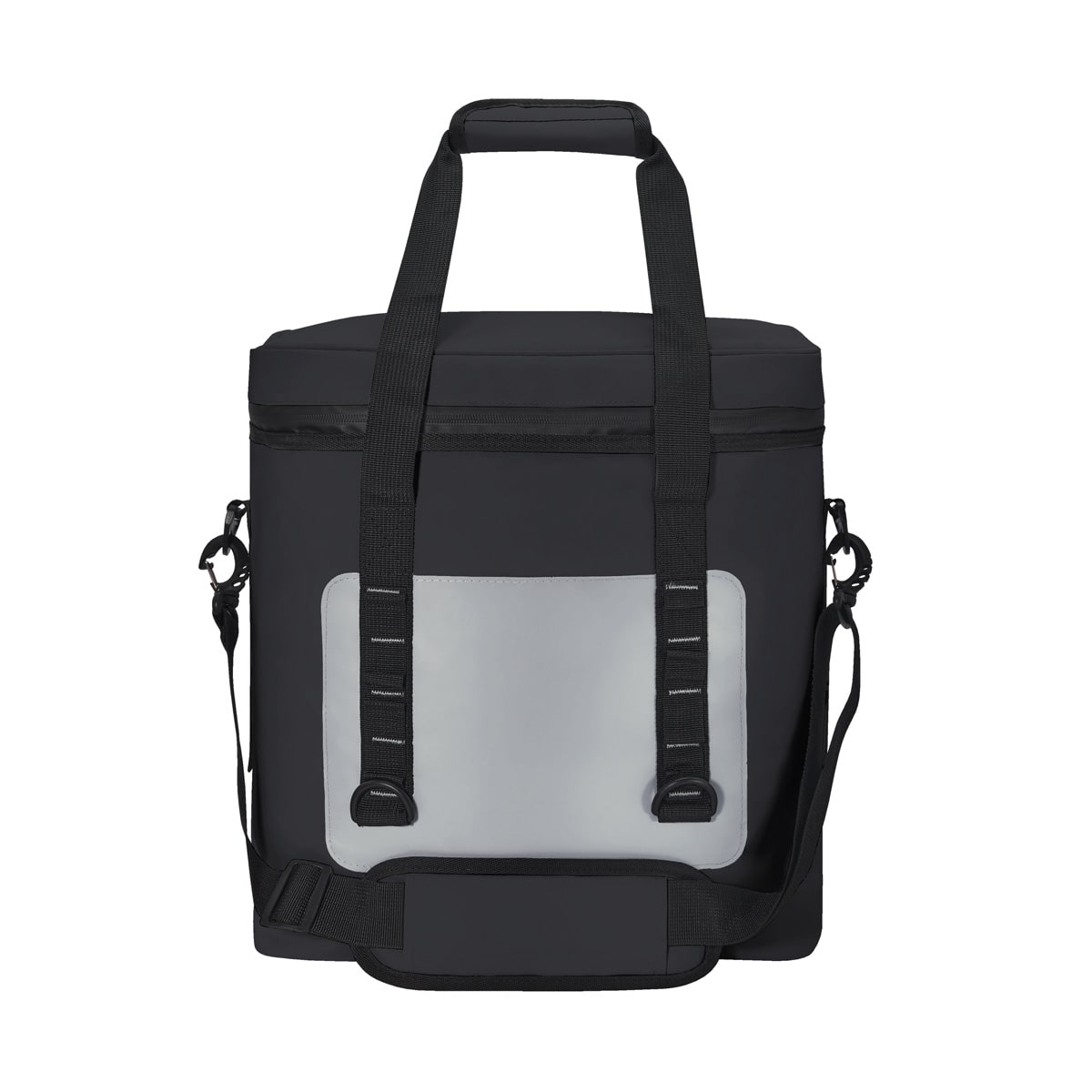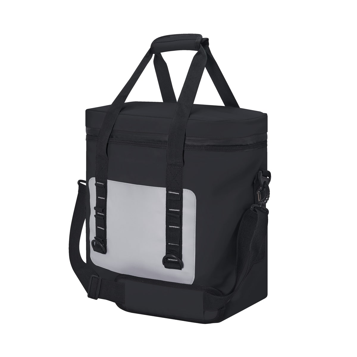 HIELERA DOVIA - Interior y exterior plastificado impermeable. Bolsa principal con cierre, bolsillo frontal. Incluye asa de mano con velcro y correa larga ajustable con soporte acojinado. Capacidad para 36 latas.
