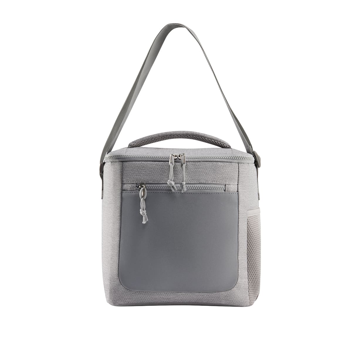 HIELERA OBLAK - Hielera con interior plastificado impermeable. Bolsa principal y bolsa frontal con cierre. Bolsillo lateral de red. Incluye asa acolchada y correa larga ajustable. Capacidad para 24 latas.