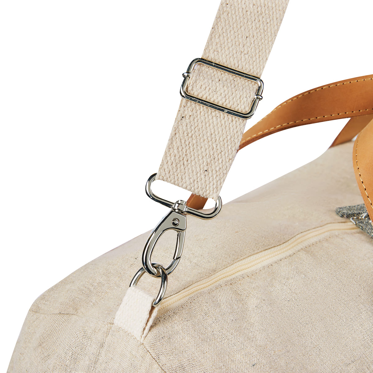 MALETA TAVY - Maleta que destaca tanto en diseño como en estilo. Es ligera y ecológica, hecha de algodón reciclado. Compartimento principal con cierre y base de cartón removible. Incluye asa ajustable removible para hombro.
