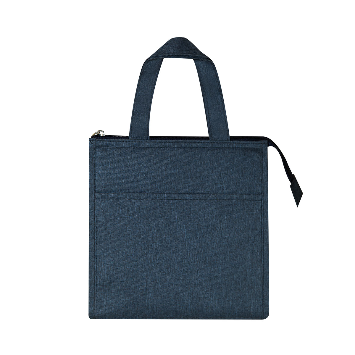 LONCHERA SAANVI - Lonchera de poliéster e interior metalizado, bolsillo frontal para organizar utensilios o pequeños accesorios. Bolsa principal con cierre y asa de mano que facilita su portabilidad. Capacidad para 6 latas.
